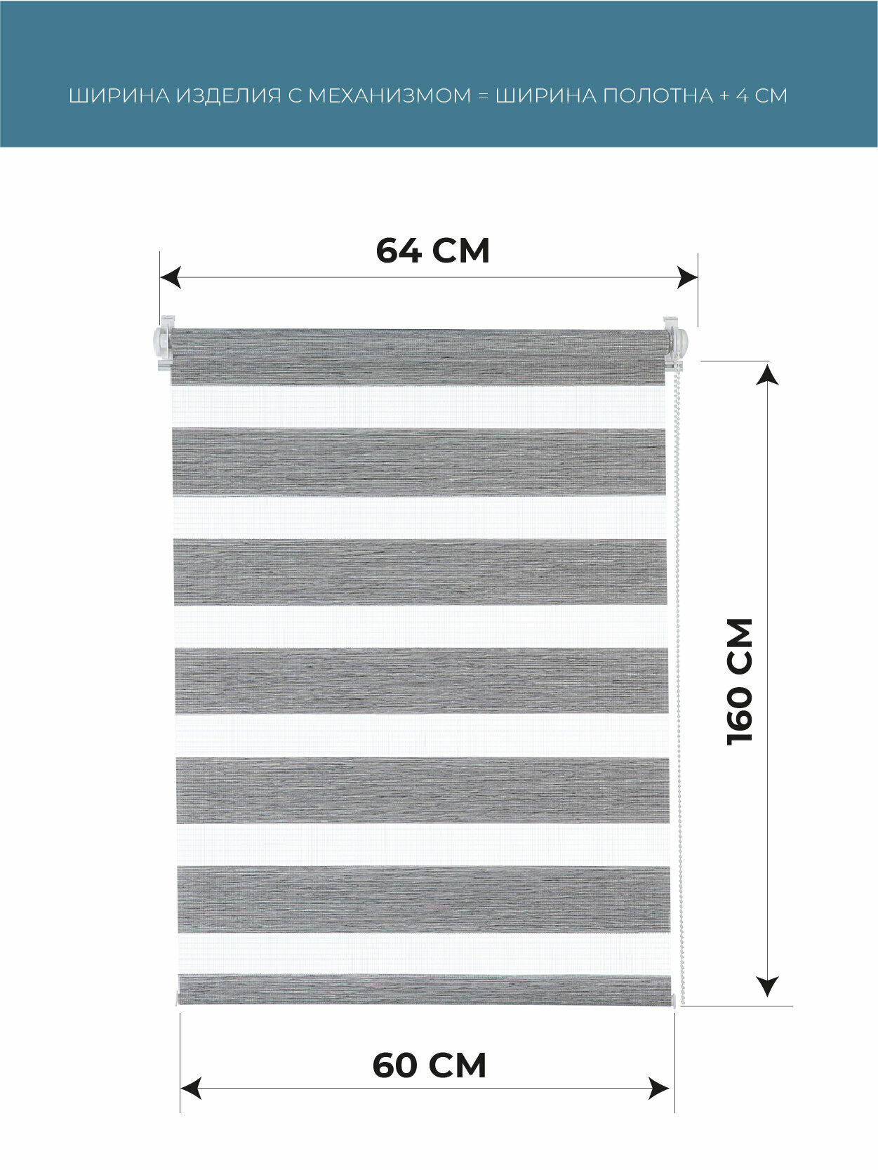 Рулонные шторы день ночь Бейс Серый DECOFEST 60 см х 160 см, жалюзи на окно