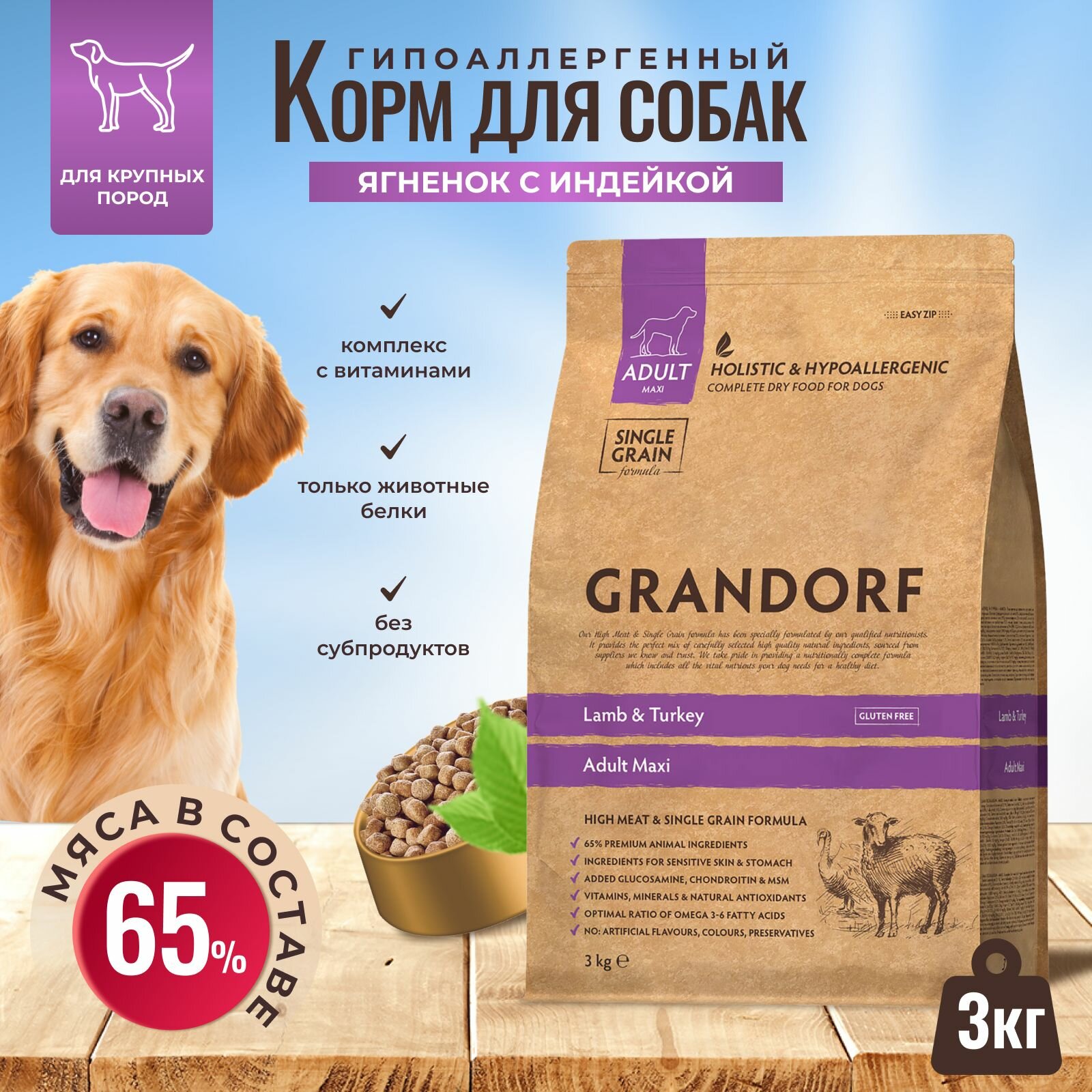 Корм для собак Grandorf Ягнёнок с индейкой Макси 3 кг х3 шт. Для крупных пород от 1 года. Низкозерновой, холистик.