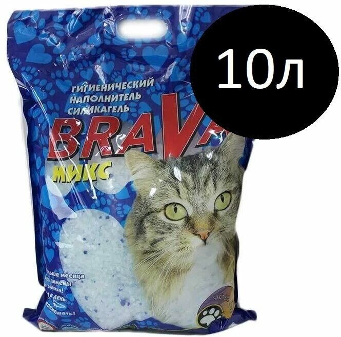 Наполнитель для кошачьего туалета brava микс силикагель 10л