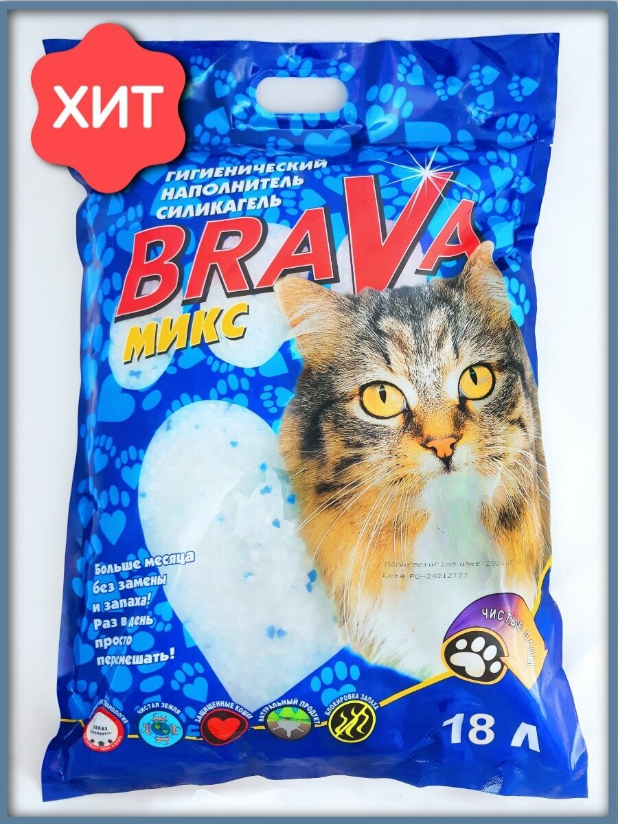 Наполнитель для кошачьего туалета brava микс силикагель 18л