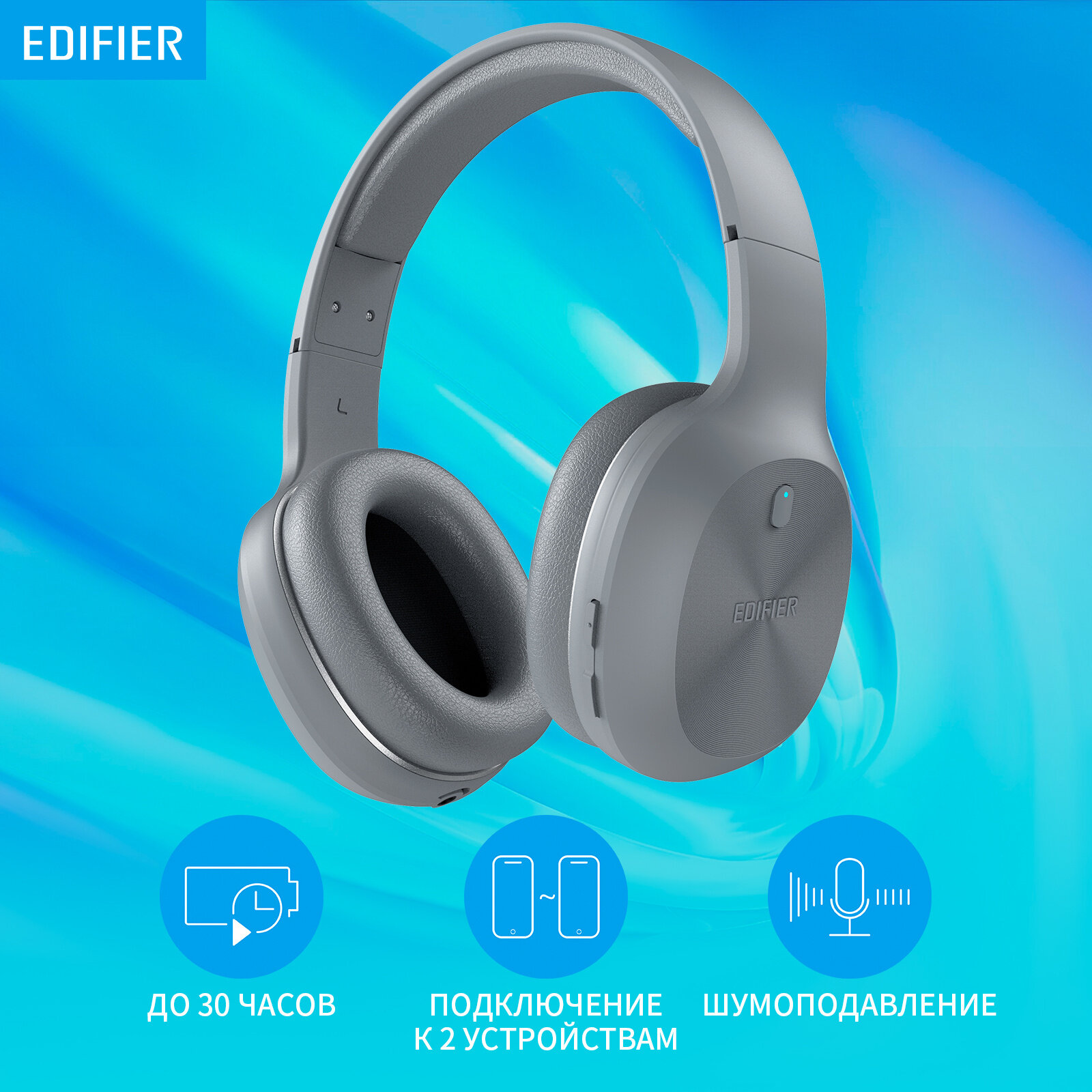 Наушники накладные Edifier W600BT 1.2 м серый беспроводные bluetooth оголовье