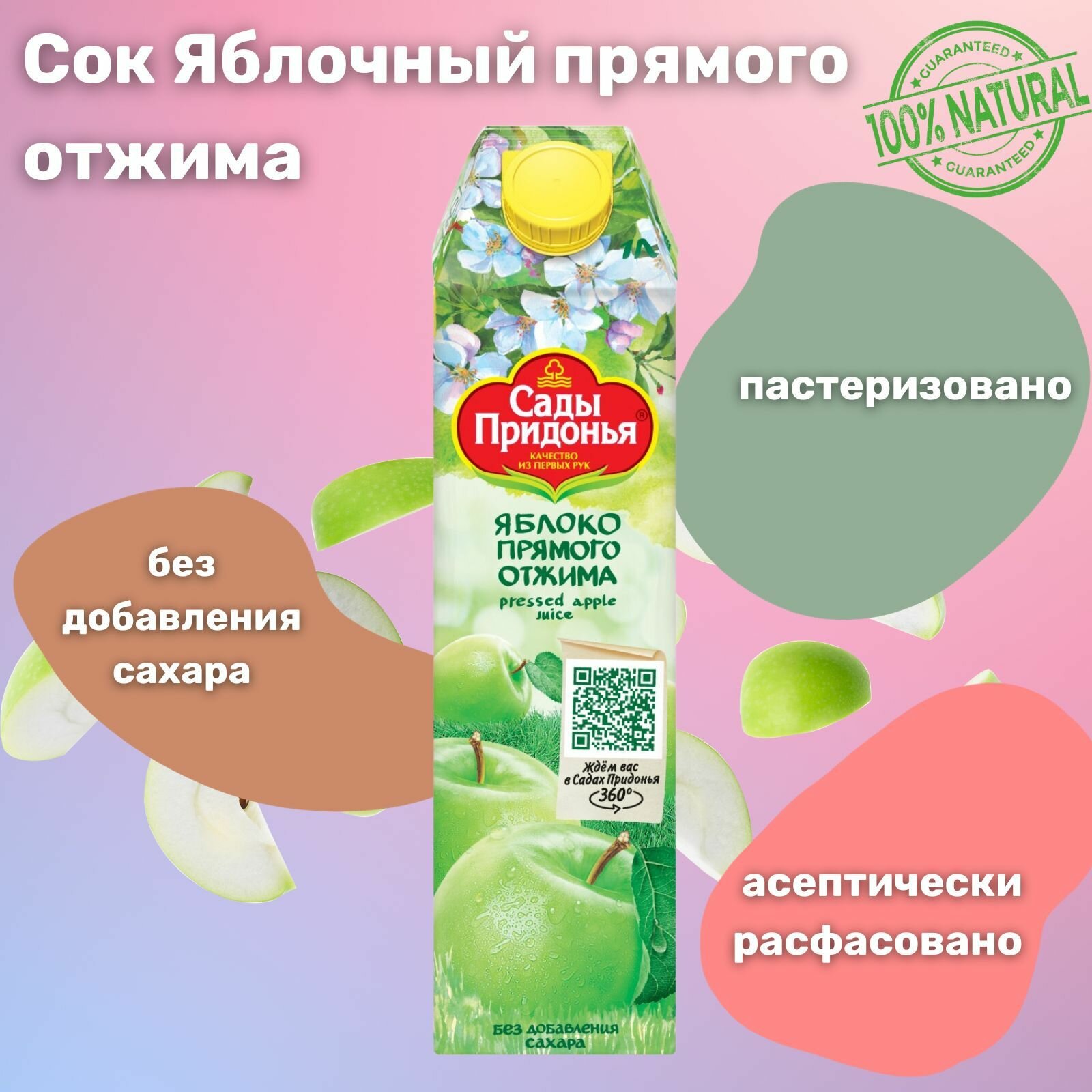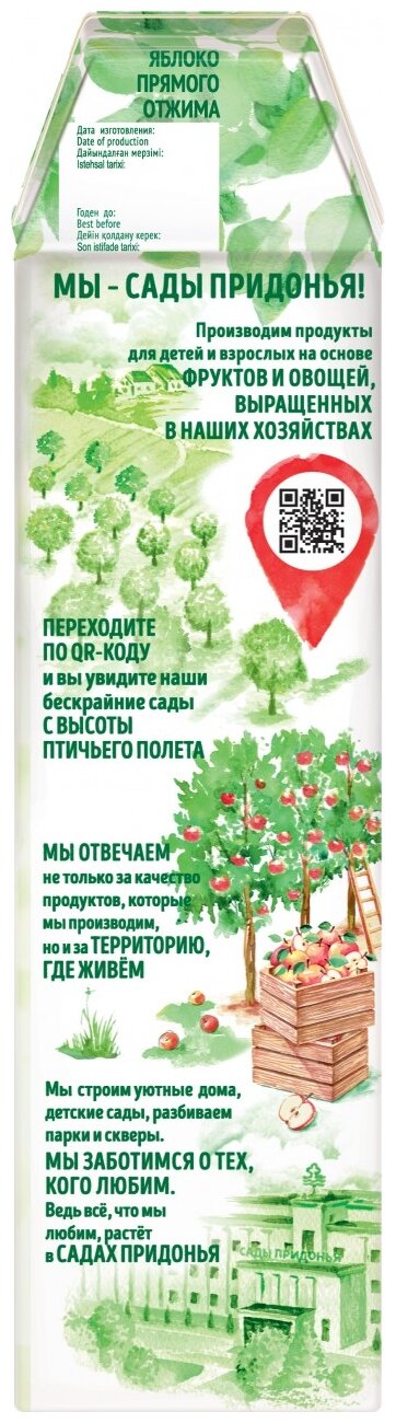 Сок сады придонья яблоко прямого отжима, 1л