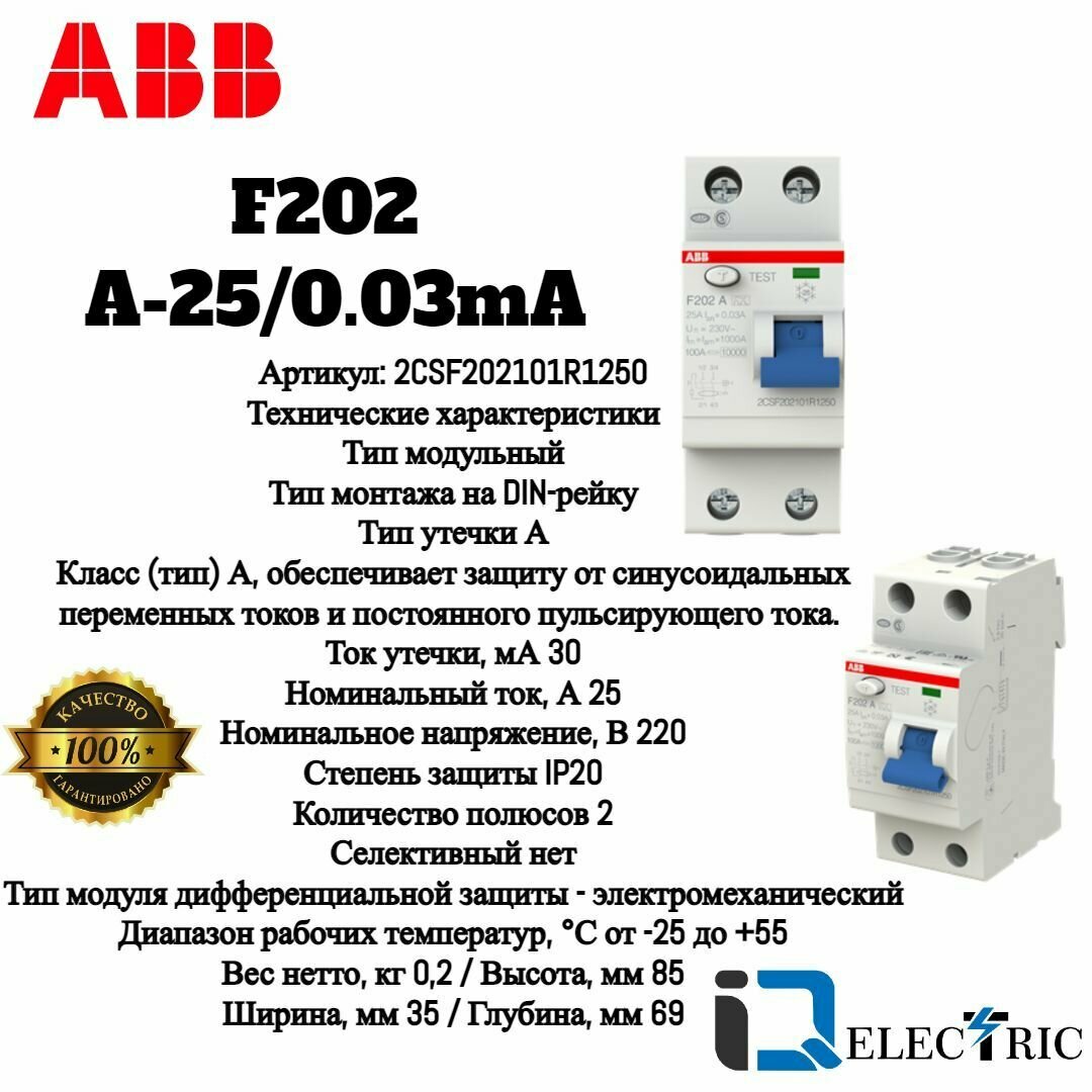 ABB F202A УЗО 2Р 25А 30mA (A)