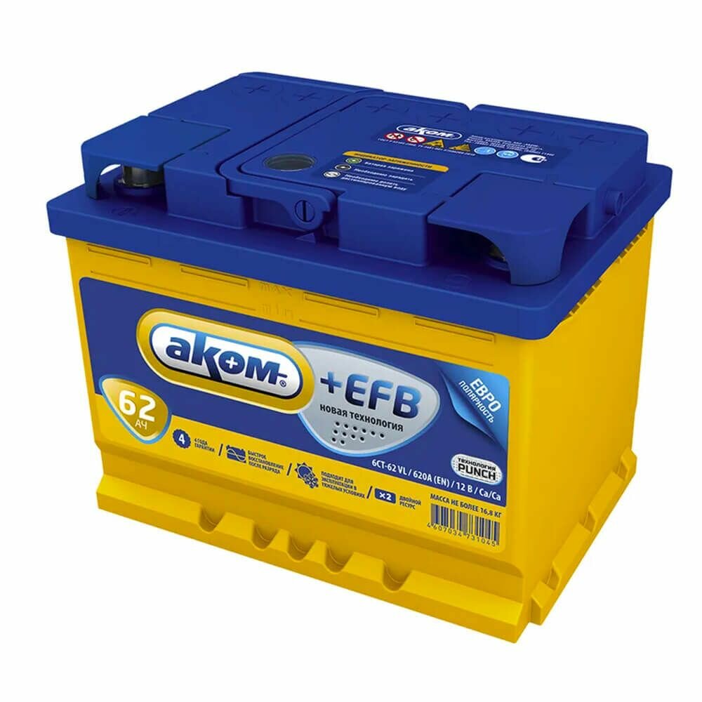 Купить Аккумулятор АКОМ +EFB 62 А/ч обратная R+ 242x175x190 EN620 А 6CT-62.0