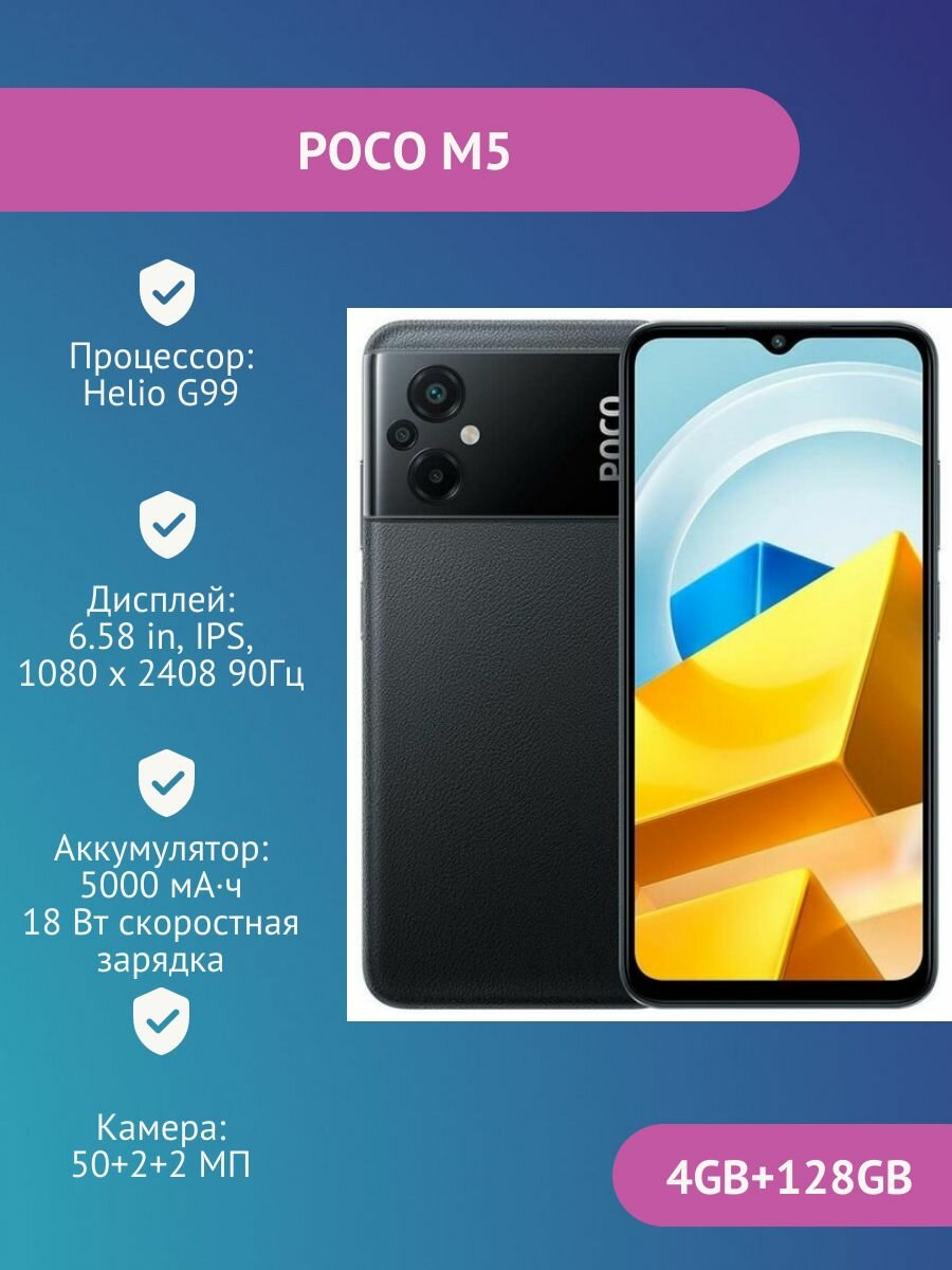 Смартфон Xiaomi POCO M5 4/128 ГБ RU (EAC), Dual nano SIM, черный