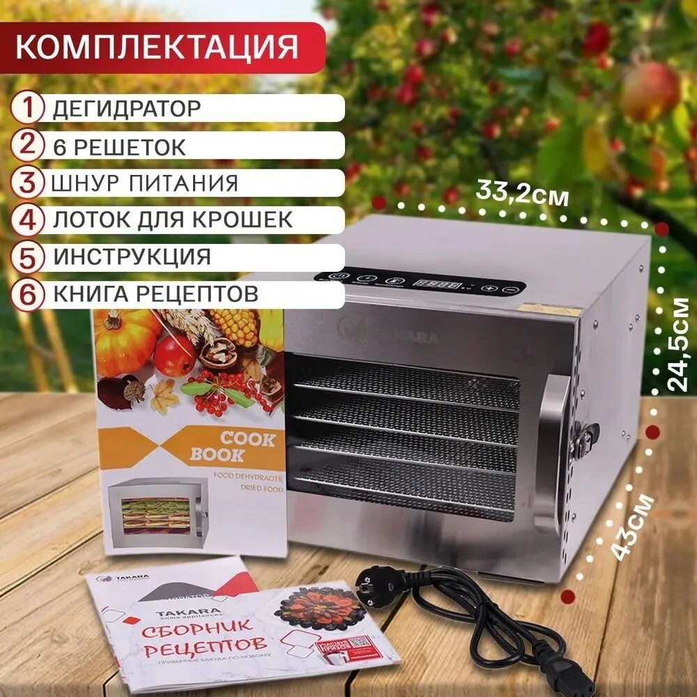 Сушилка для овощей и фруктов TAKARA DF-06 двухслойномый корпус, нержавеющая сталь, Гарантия - 3 года интересное: