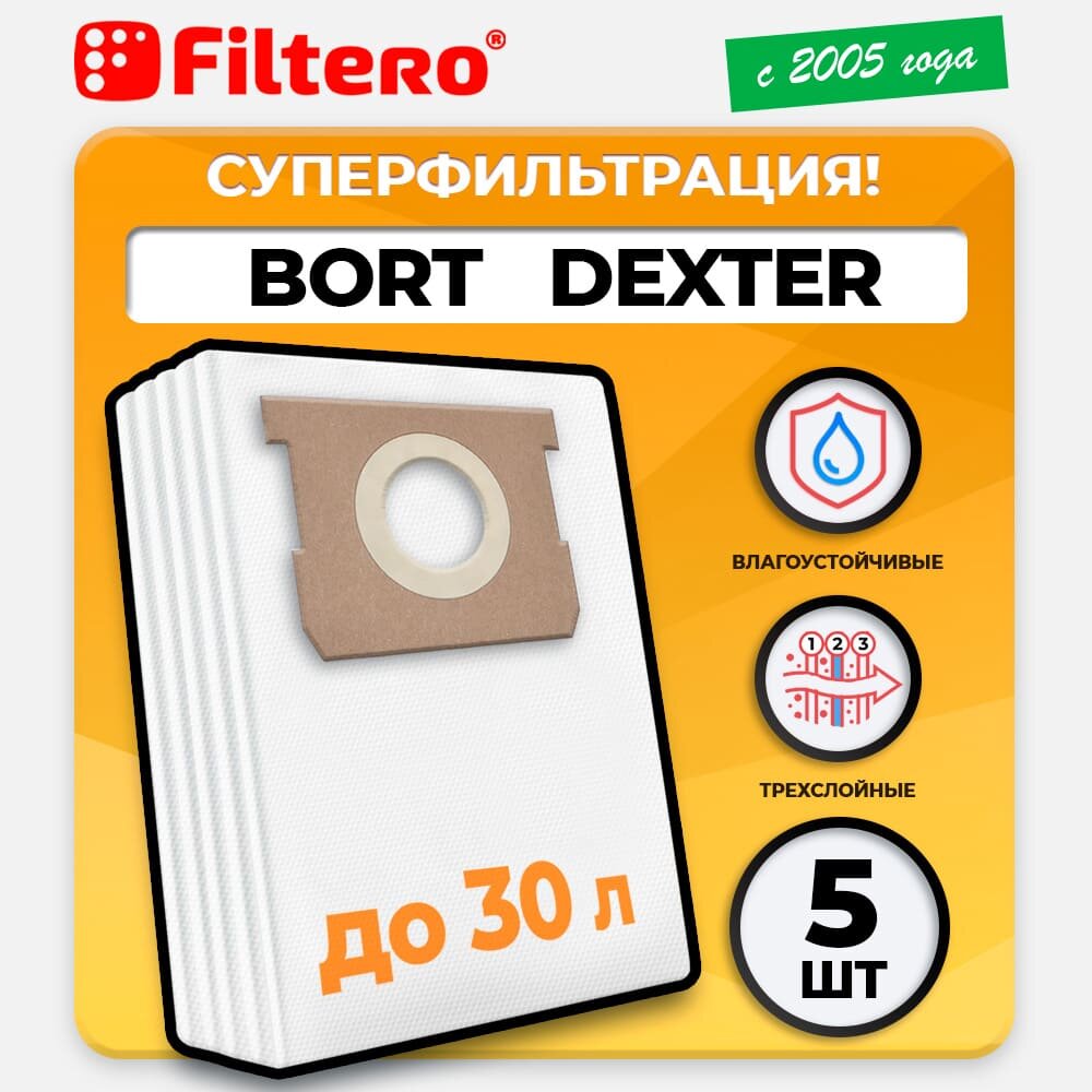 Мешки Filtero BRT 20 Pro для промышленных пылесосов BORT,DEXTER,ENERGER,SHOP VAC,ОБИ, 5 штук