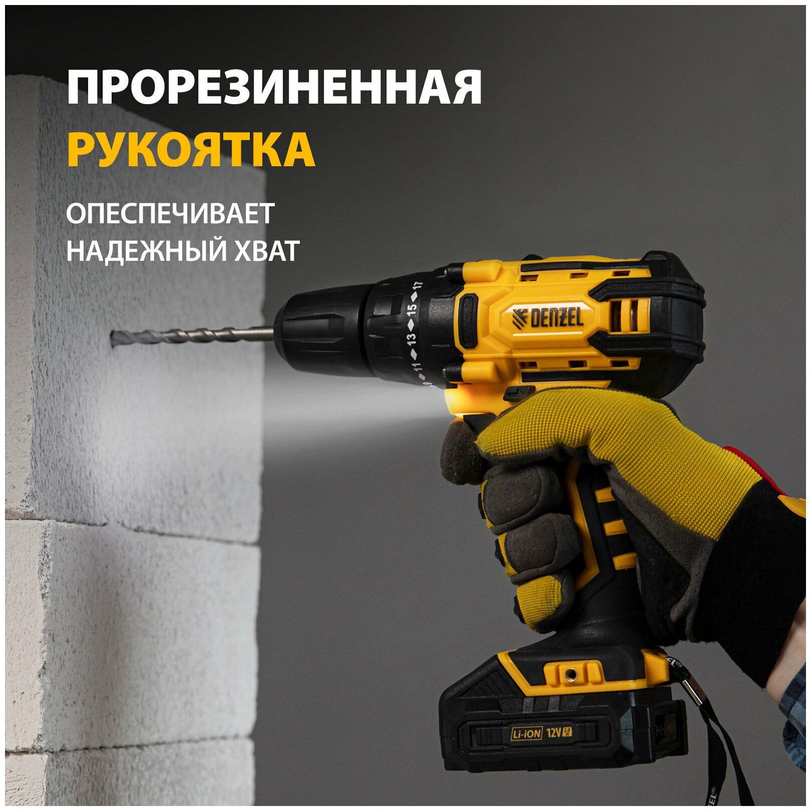 СохранитьДрель-шуруповерт аккумуляторная CDL-12-01CB, Li-Ion, 12 В, 1 акк. Denzel [26104] интересное: