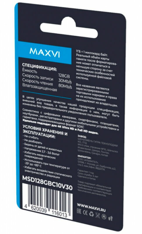 Карта памяти MAXVI microSDXC 128GB, class 10, UHS-I (V30)