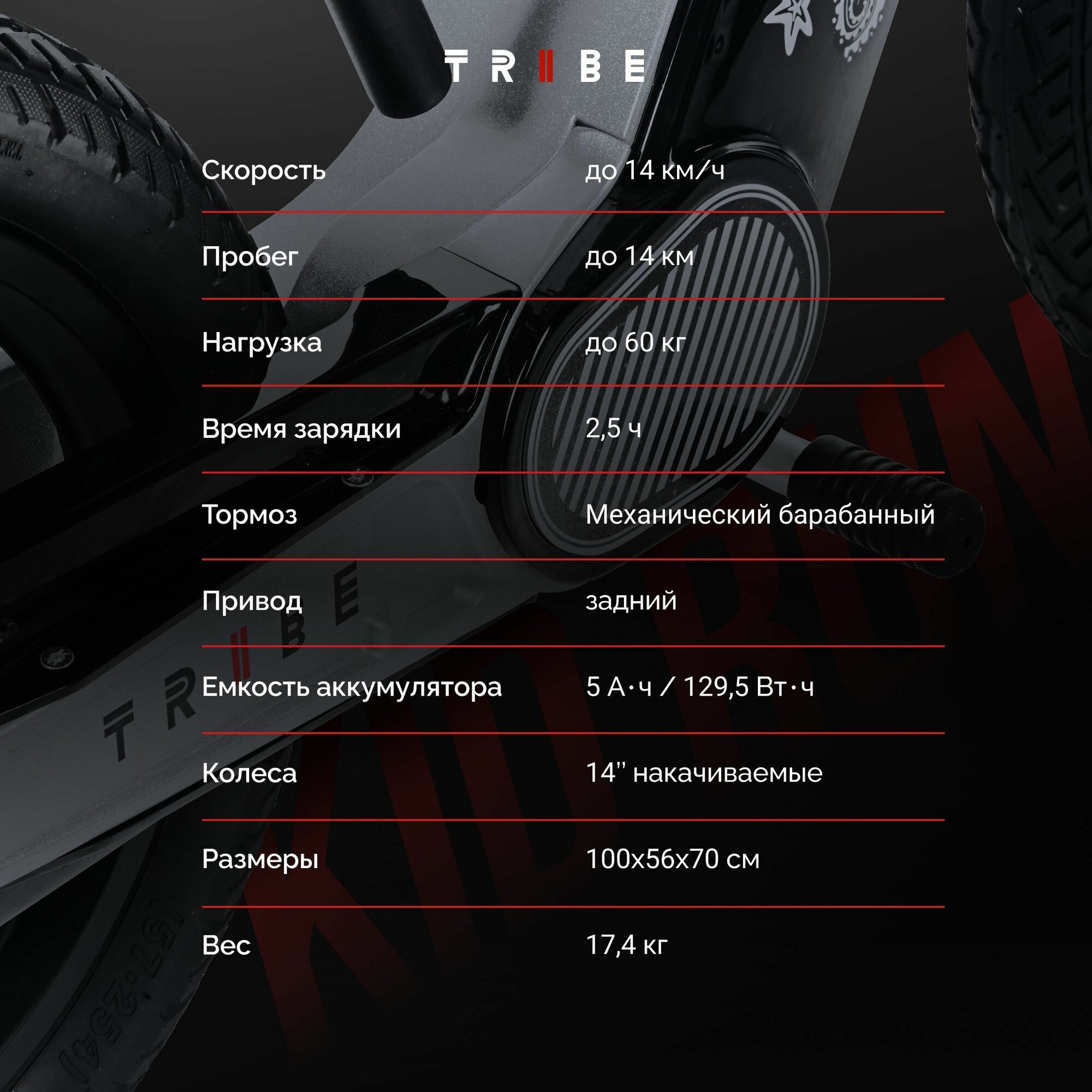 Электробеговел Tribe Kid Run (150 Вт, 14", 5000 мАч, 24В, 16 км/ч, 10,3 кг, с 6 лет)