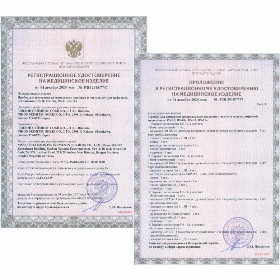 | Комплектация | - блок электронный; - манжета Cuff DS-11 (включая воздушный шланг и штекер воздушного шланга); - элементы питания – 4 шт.; - сумочка для хранения; - руководство по эксплуатации; - гарантийный талон. |