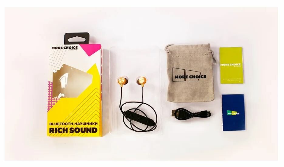 Беспроводные BLUETOOTH наушники More choice BG10 gold вакуумные с шейным шнурком