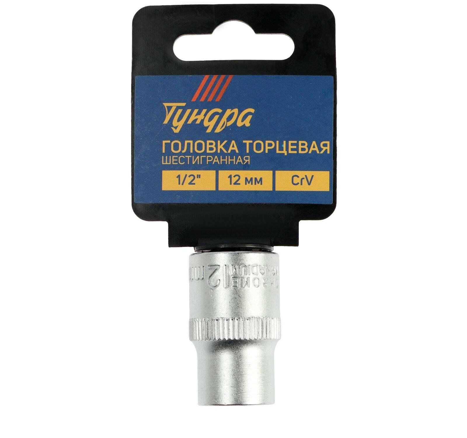 Головка торцевая шестигранная тундра, под квадрат 1/2", 12 мм, CrV. В наборе 1шт.