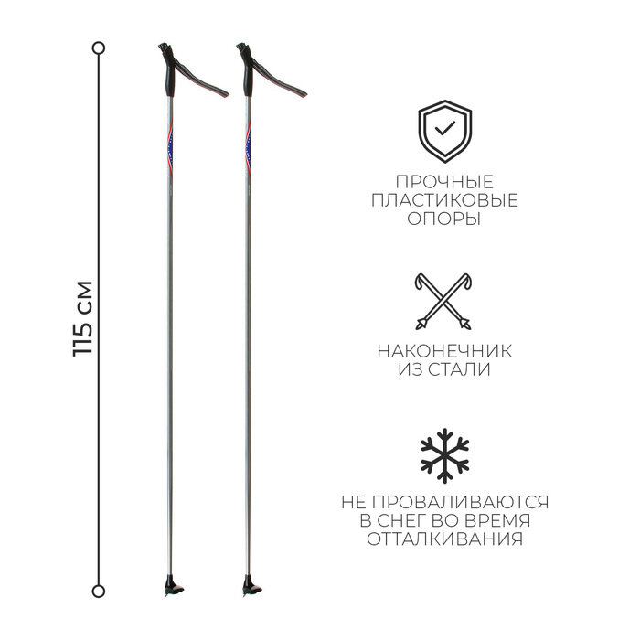 Лыжные палки "Gekars Vega", длина 115 см, цвет серебристый