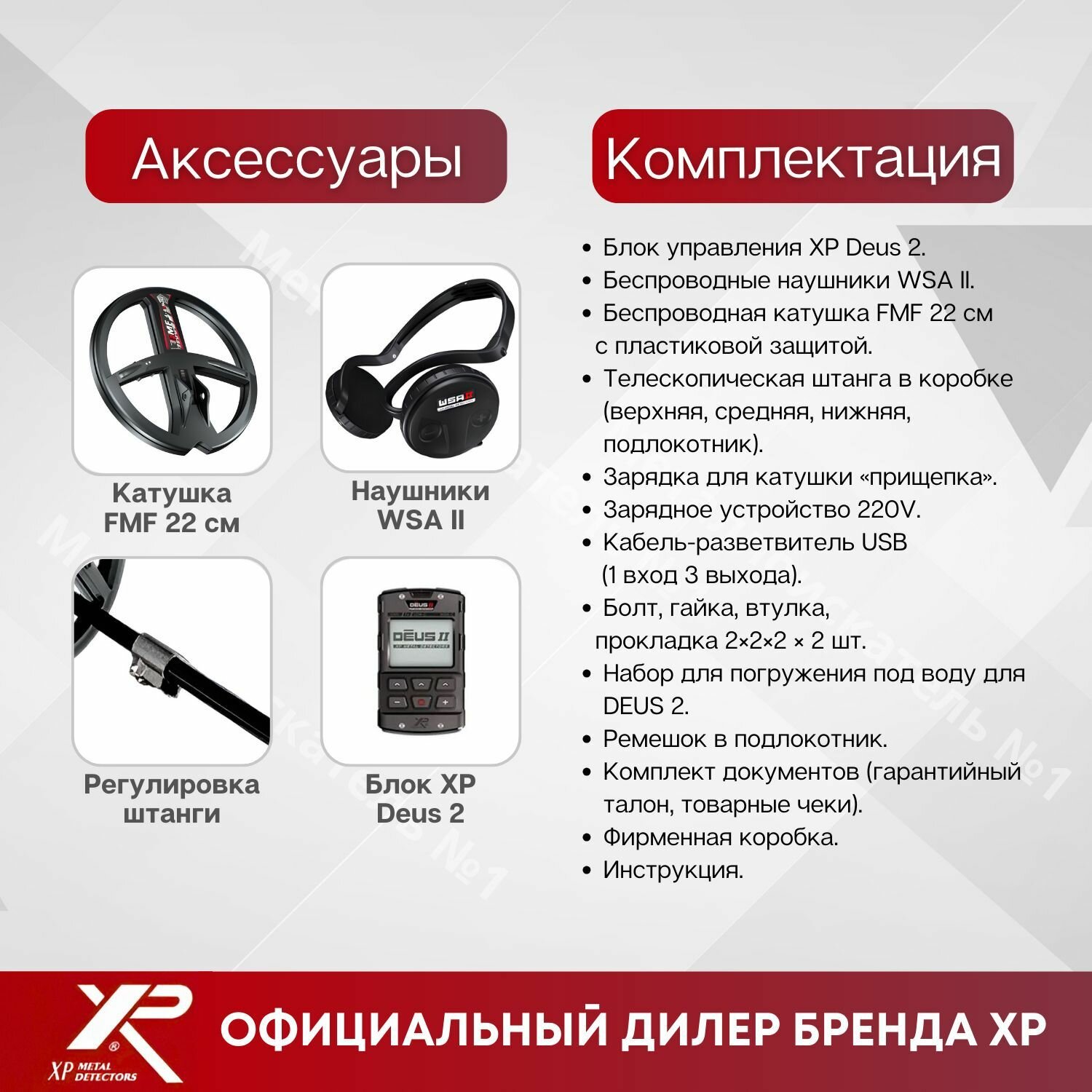 Металлоискатель XP Deus 2 (FMF) мультичастотный, катушка 22.5 см FMF, блок, наушники WSA2