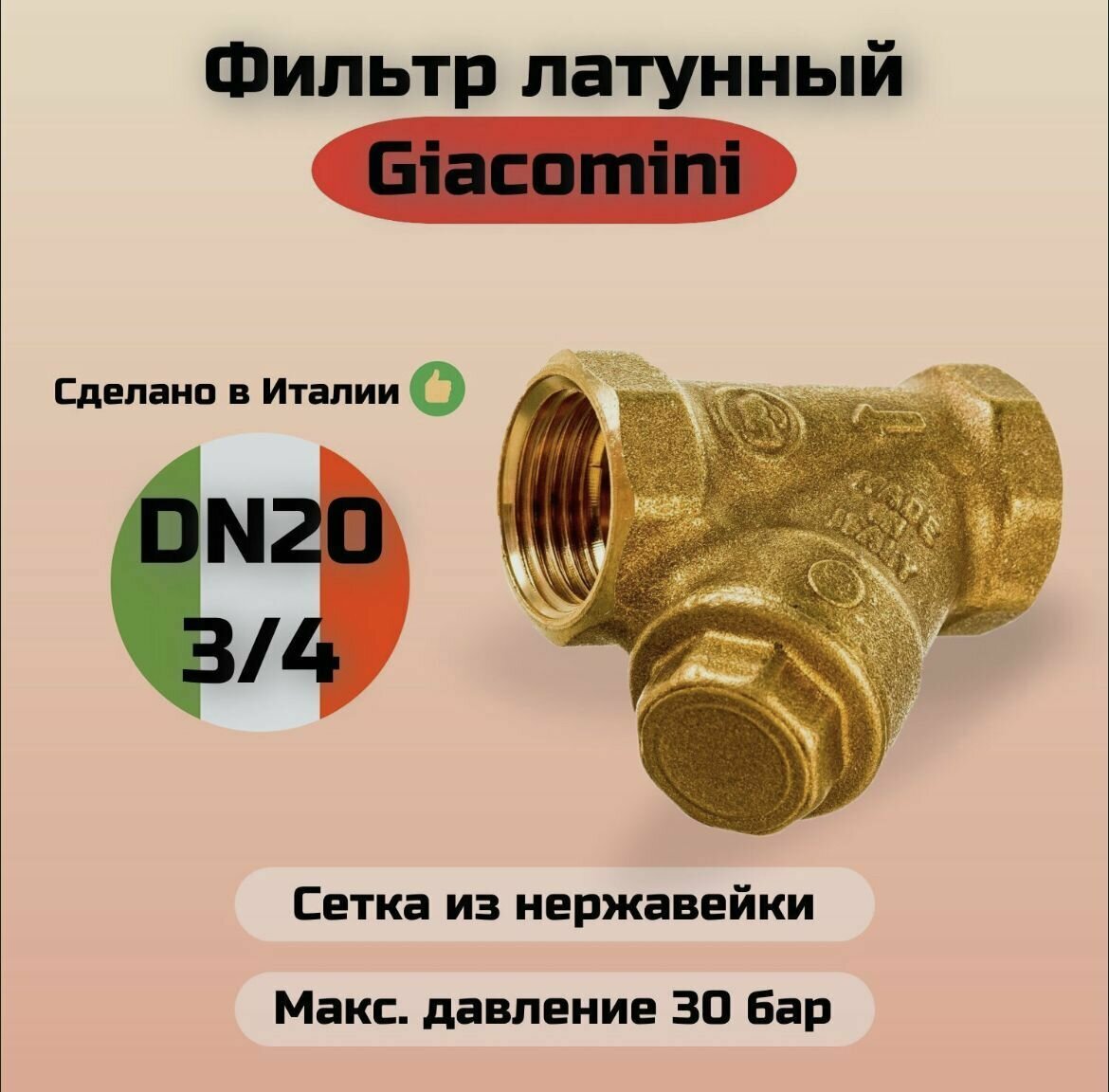 Фильтр механической очистки Giacomini R74A, 3/4, В, латунь R74AY104