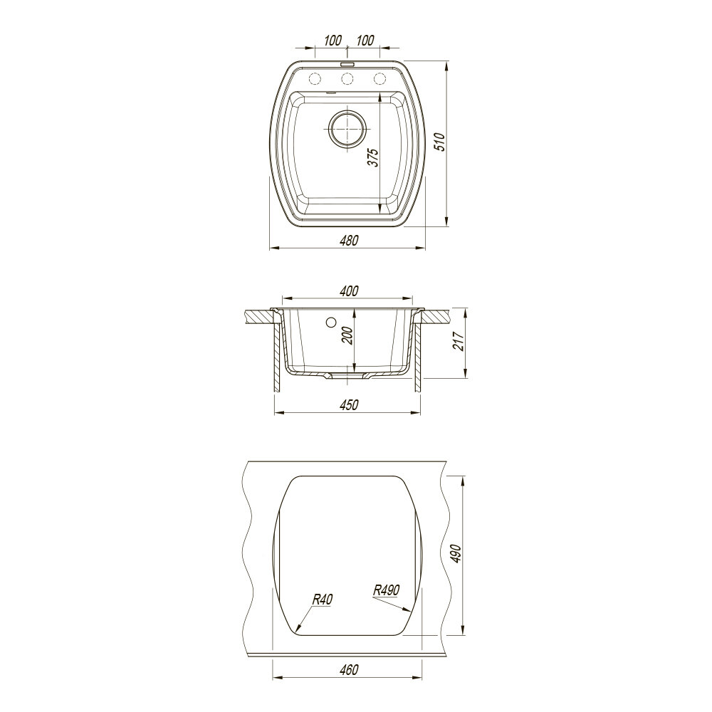 Врезная кухонная мойка 51 см, FLORENTINA Нире-480 FS, грей, 480 х 510 мм