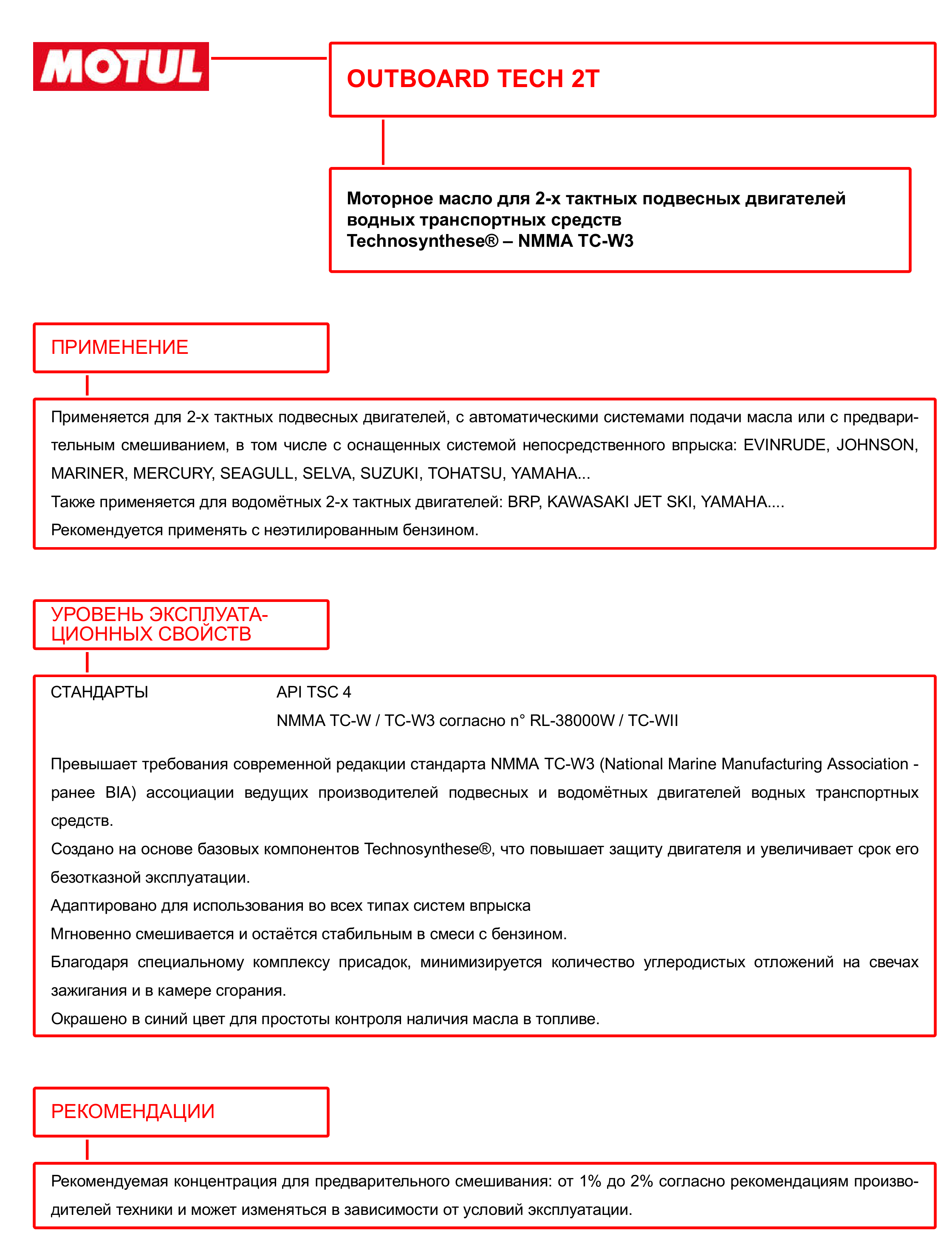 СохранитьMOTUL Outboard Tech 2T 1л / 102789 интересное: