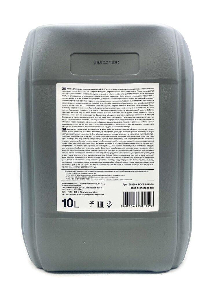 VOLGA-OIL 800809 Масло дизельное М10Г2К мин.10л волга-ойл