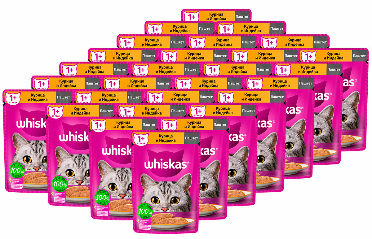 Купить Whiskas пауч для кошек (паштет) Курица и индейка, 75 г. упаковка 28 шт