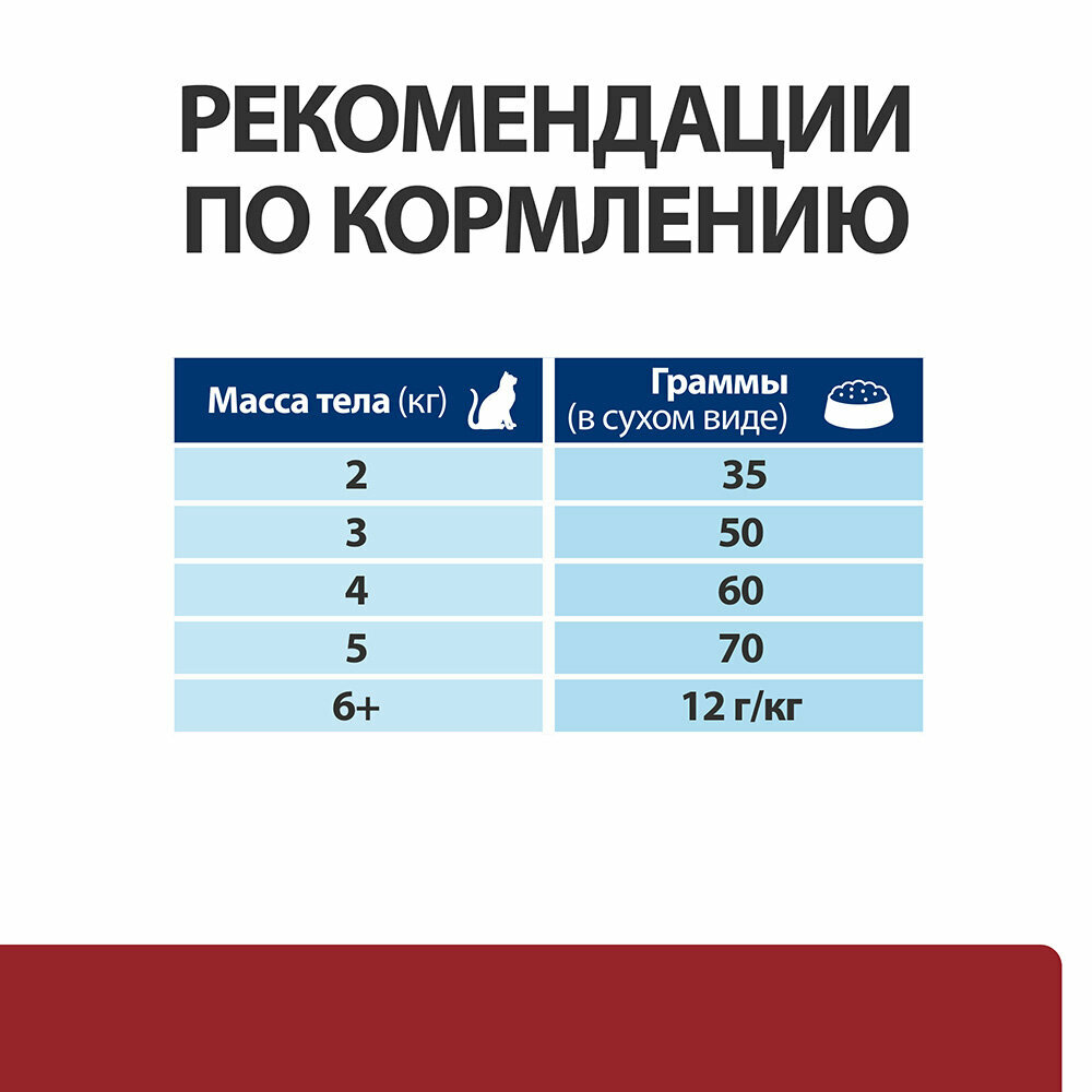 | Дозировка | Пробуете этот корм впервые? Постепенно в течение 7 дней переводите животное на новый корм, увеличивая его содержание по отношению к прежнему. Обеспечьте питомцу свободный доступ к свежей воде. Монодиета. Не требует дополнений.Норма кормления для кошки весом 4 кг составляет 3-4 пауча в день и может быть разделена на 2 и более кормлений. Скорректируйте объем порции в соответствии с размером животного для поддержания оптимального веса. Перед применением проконсультируйтесь с ветеринарным специалистом. |