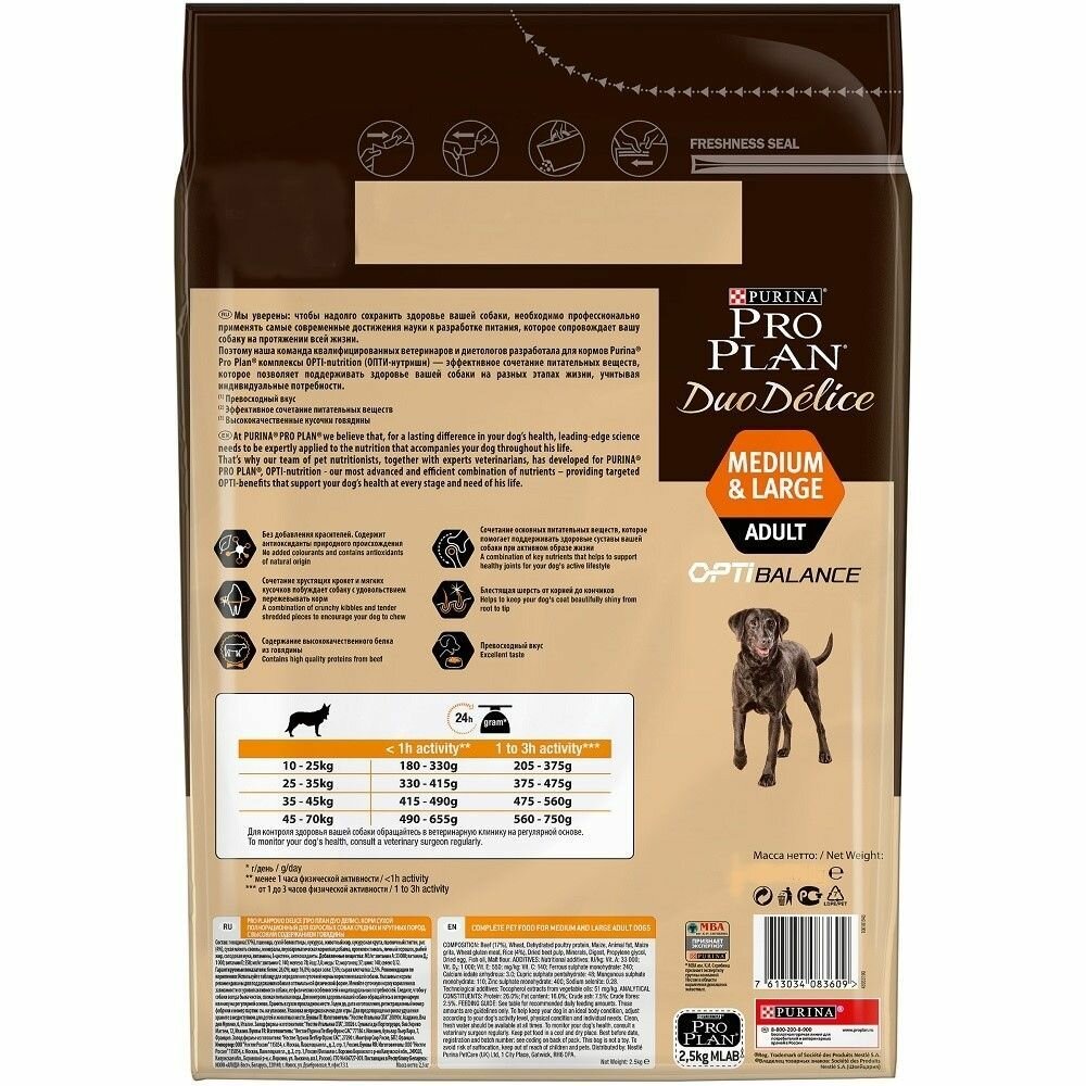 Сухой корм Pro Plan Duo Delice для взрослых собак средних и крупных пород с Говядиной и Рисом пакет 2.5кг, для взрослых собак средних и крупных пород