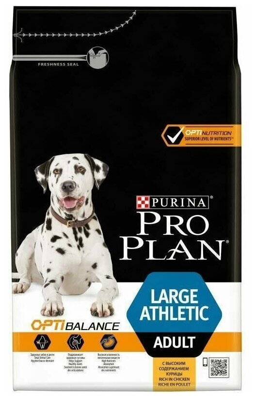 Корм Purina Pro Plan для взрослых собак крупных пород с атлетическим телосложением, с высоким содержанием курицы, 3кг