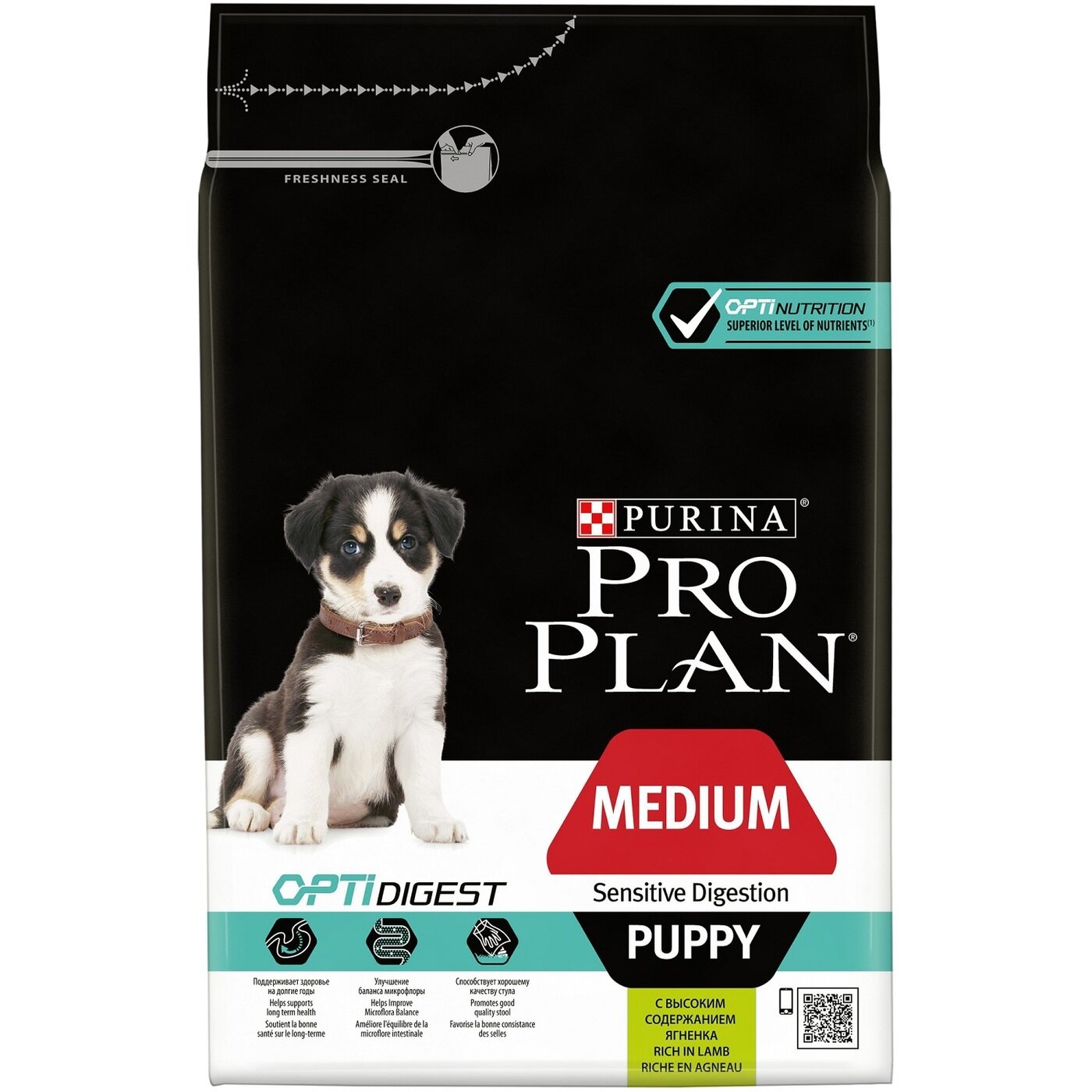 Корм PRO PLAN PUPPY Medium OPTI DIGEST (комплекс для поддержания здорового пищеварения) для щенков средних пород с чувствительным пищеварением, с ягненком, 3 кг