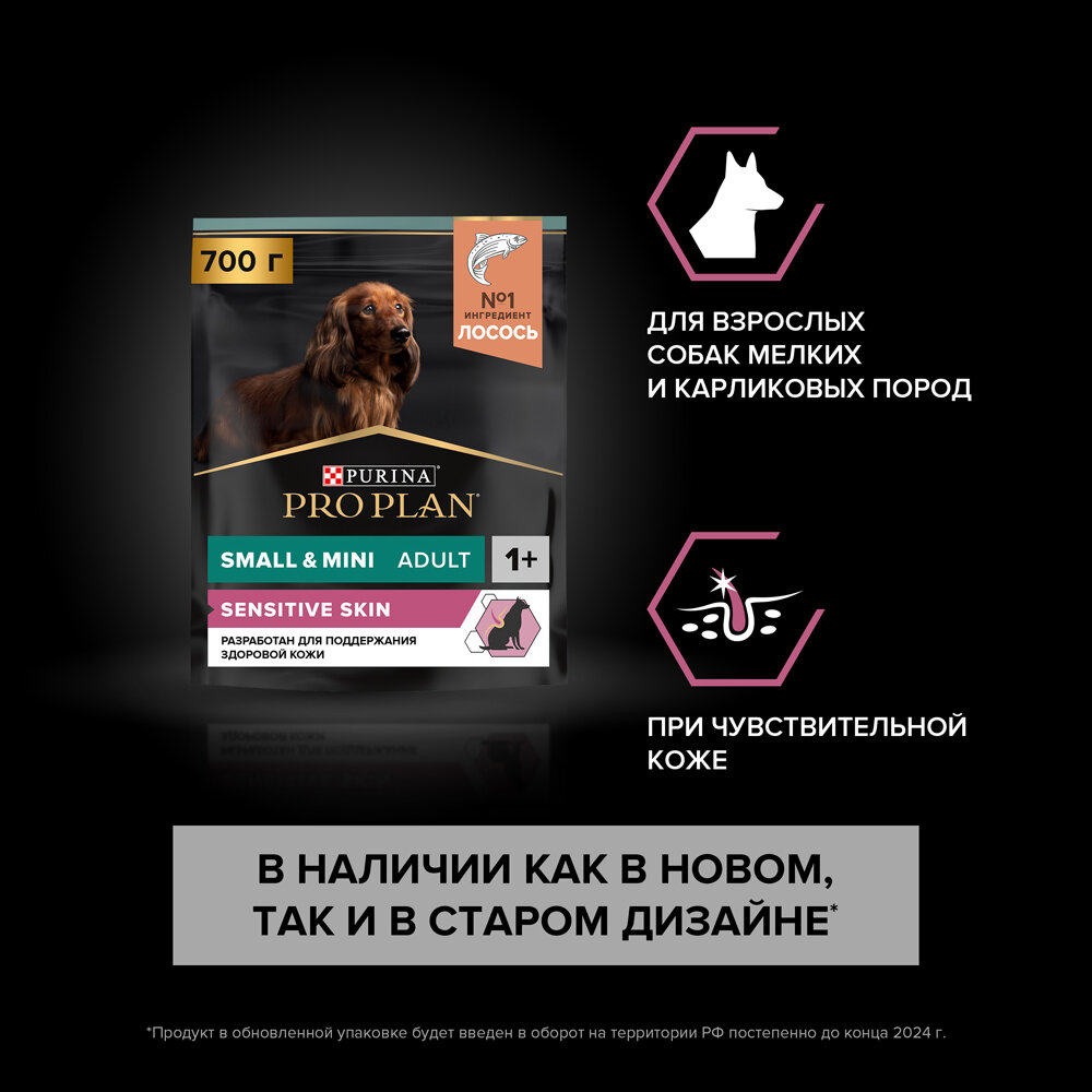 Купить PRO PLAN Adult Small & Mini Sensitive Skin сухой корм для собак мелких и карликовых пород 1 - 10 кг с чувствительной кожей Лосось 700гр