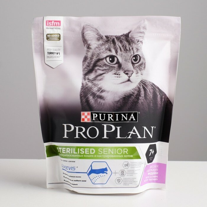 Сухой корм Pro Plan для стерилизованных кошек и кастрированных котов старше 7 лет, с индейкой, Пакет, 400г