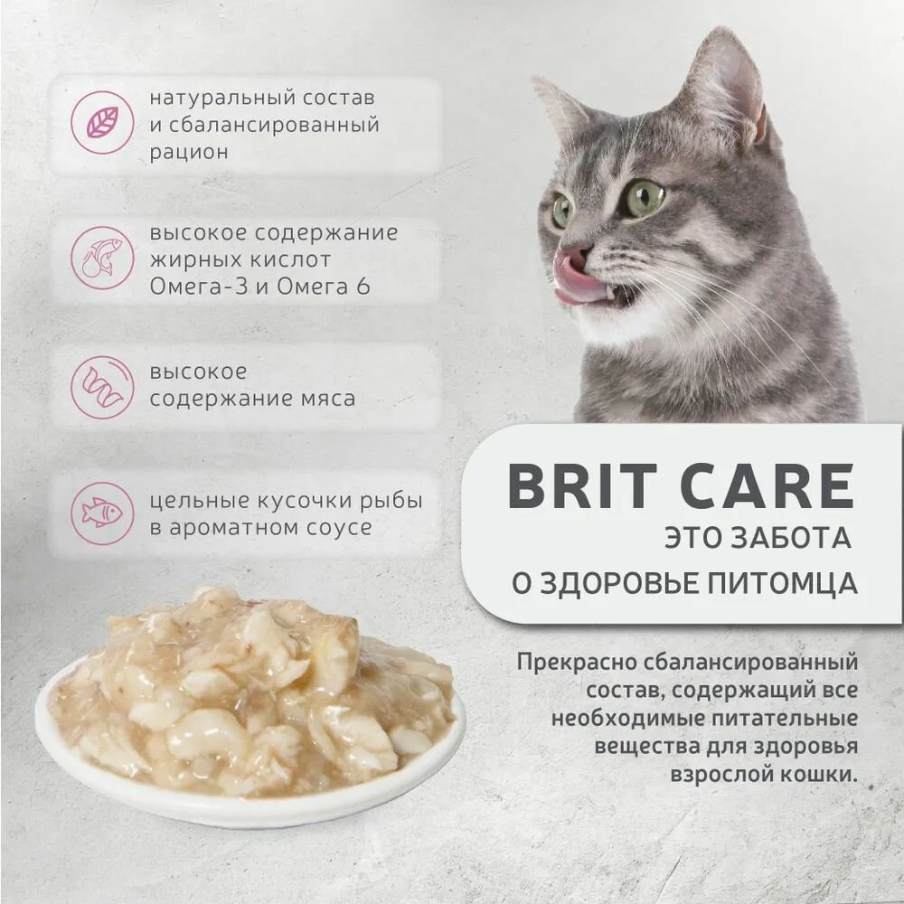 Купить Brit Care пауч для кошек (кусочки в соусе) Морской лещ, 80 г. упаковка 24 шт