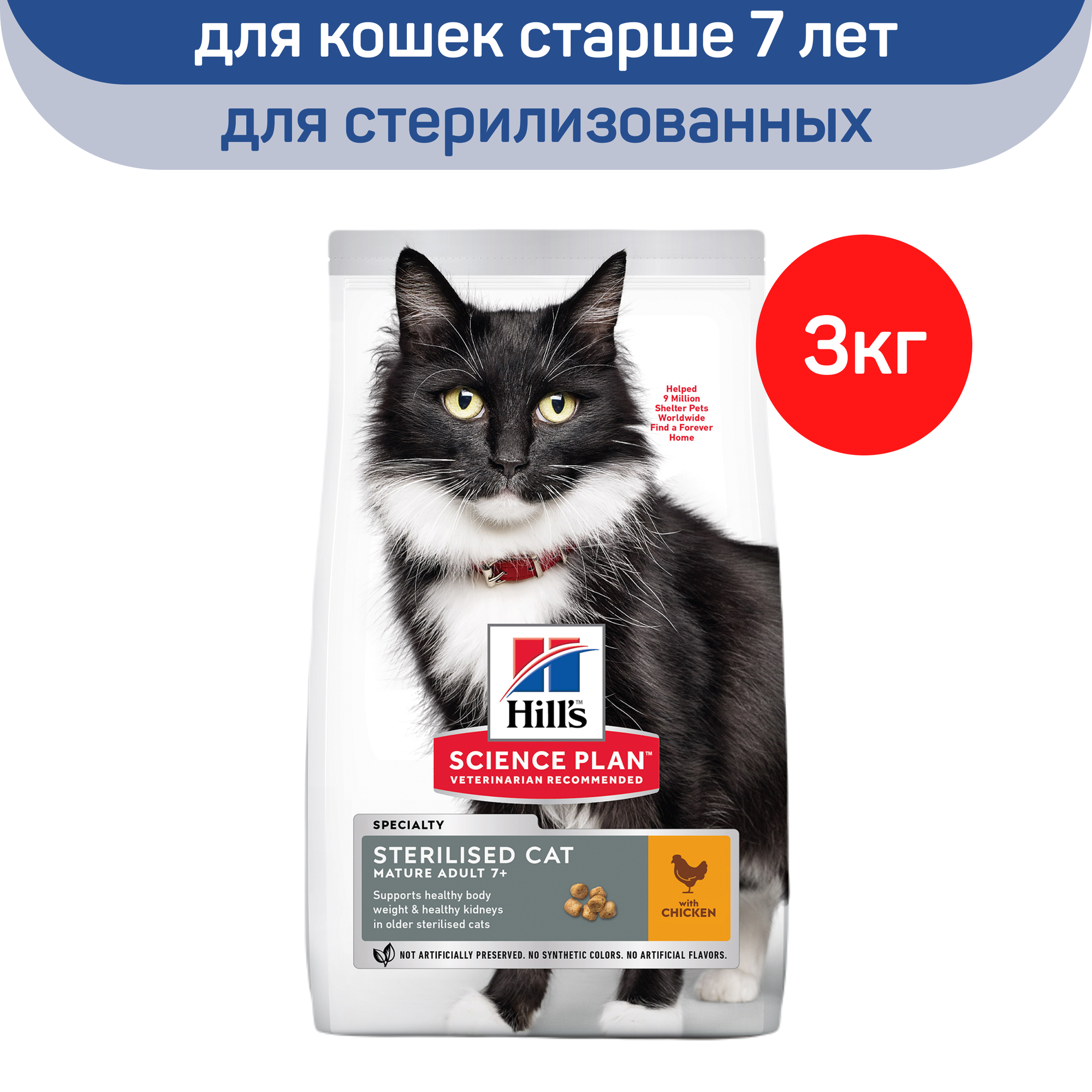 Сухой корм Hill's Science Plan для взрослых стерилизованных кошек старше 7 лет, с курицей, 3 кг