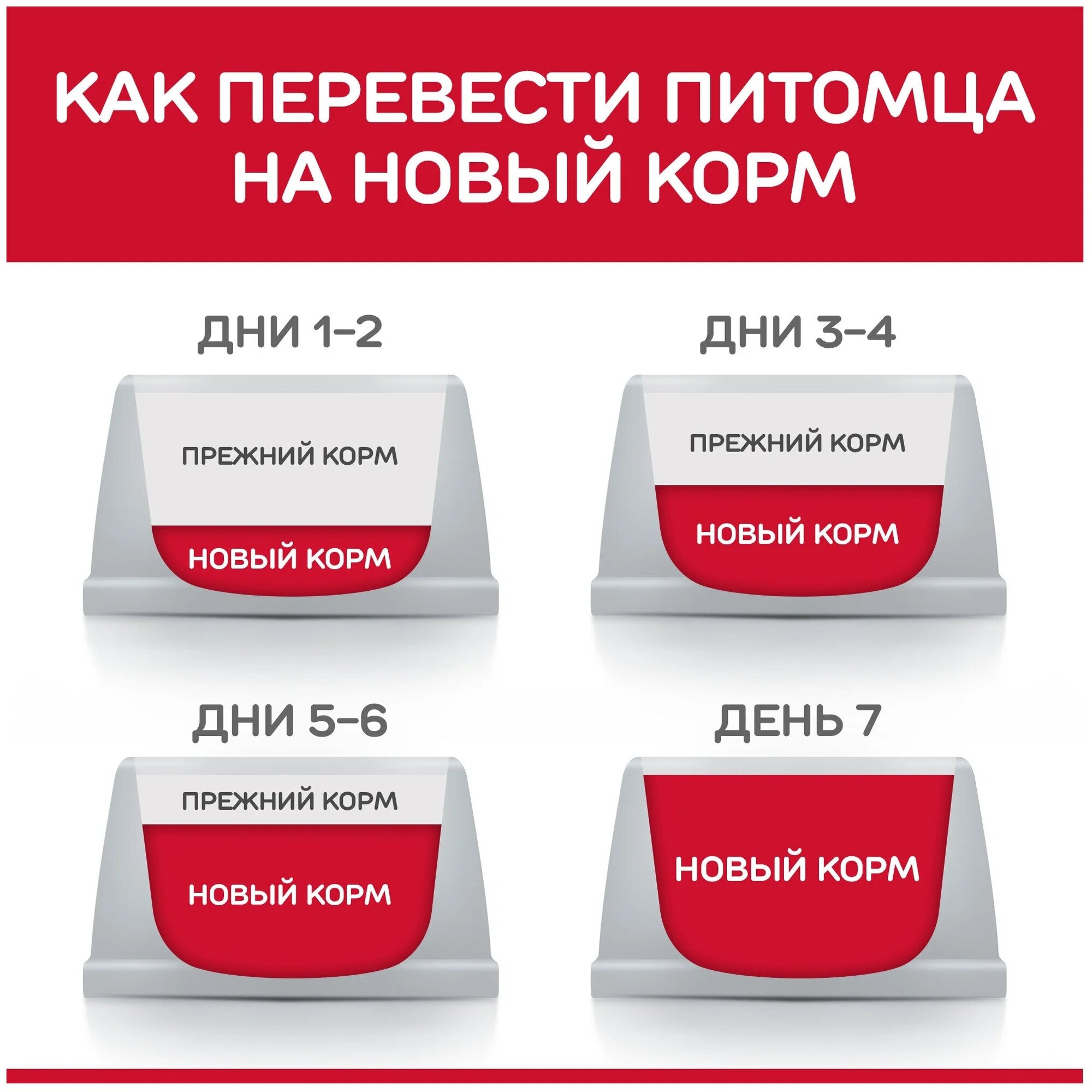 | Дозировка | Следуйте рекомендациям по кормлению, указанным на упаковке. Скорректируйте количество корма в соответствии с размером вашего питомца для поддержания оптимального веса. Если у вас есть сомнения, обратитесь к ветеринарному специалисту. Пробуете этот корм впервые? В течение 7 дней постепенно увеличивайте содержание нового корма по отношению к прежнему до момента его полного замещения. У кошки всегда должен быть доступ к чистой питьевой воде! Потребности ваших питомцев в питании могут меняться с возрастом. Уточняйте у вашего ветеринарного специалиста подходит ли текущий рацион вашему питомцу на каждом осмотре. |