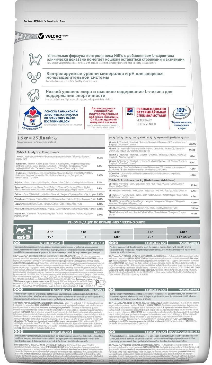 604728 хиллс Корм сух.д/стерилизованных пожилых кошек с Курицей 7+ 1,5кг