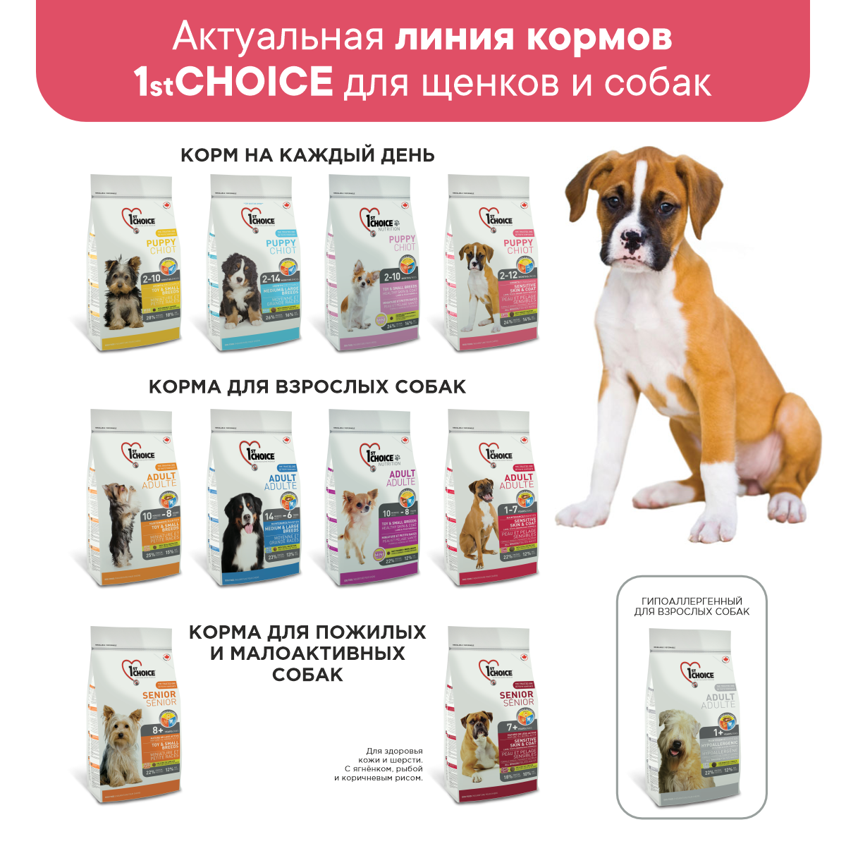 1st Choice корм для щенков с чувствительной кожей и для шерсти, ягненок с рыбой и рисом