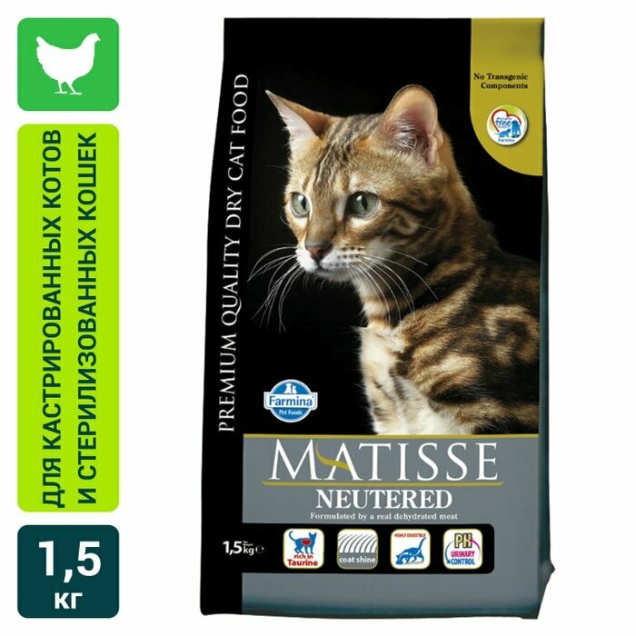 Сухой корм Farmina Matisse Neutered, для кастрированных/стерилизованных котов/ кошек, с курицей, 1,5 кг