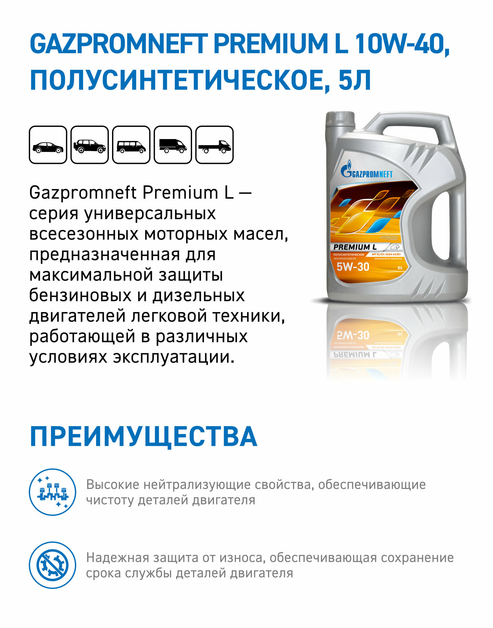 Масло моторное Gazpromneft premium l 10w-40 полусинтетическое 5 л 2389900132 Gazpromneft 253140406