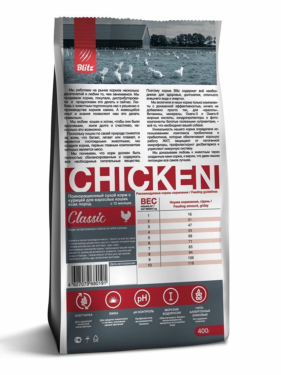 BLITZ CLASSIC ADULT CAT CHICKEN для взрослых кошек с курицей (0,4 кг)