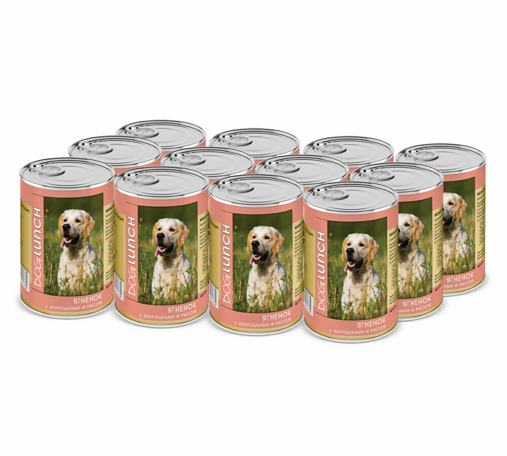 Консервы DOG LUNCH для собак ягненок с потрошками и рисом в желе 750 г (Упаковка 12 шт)