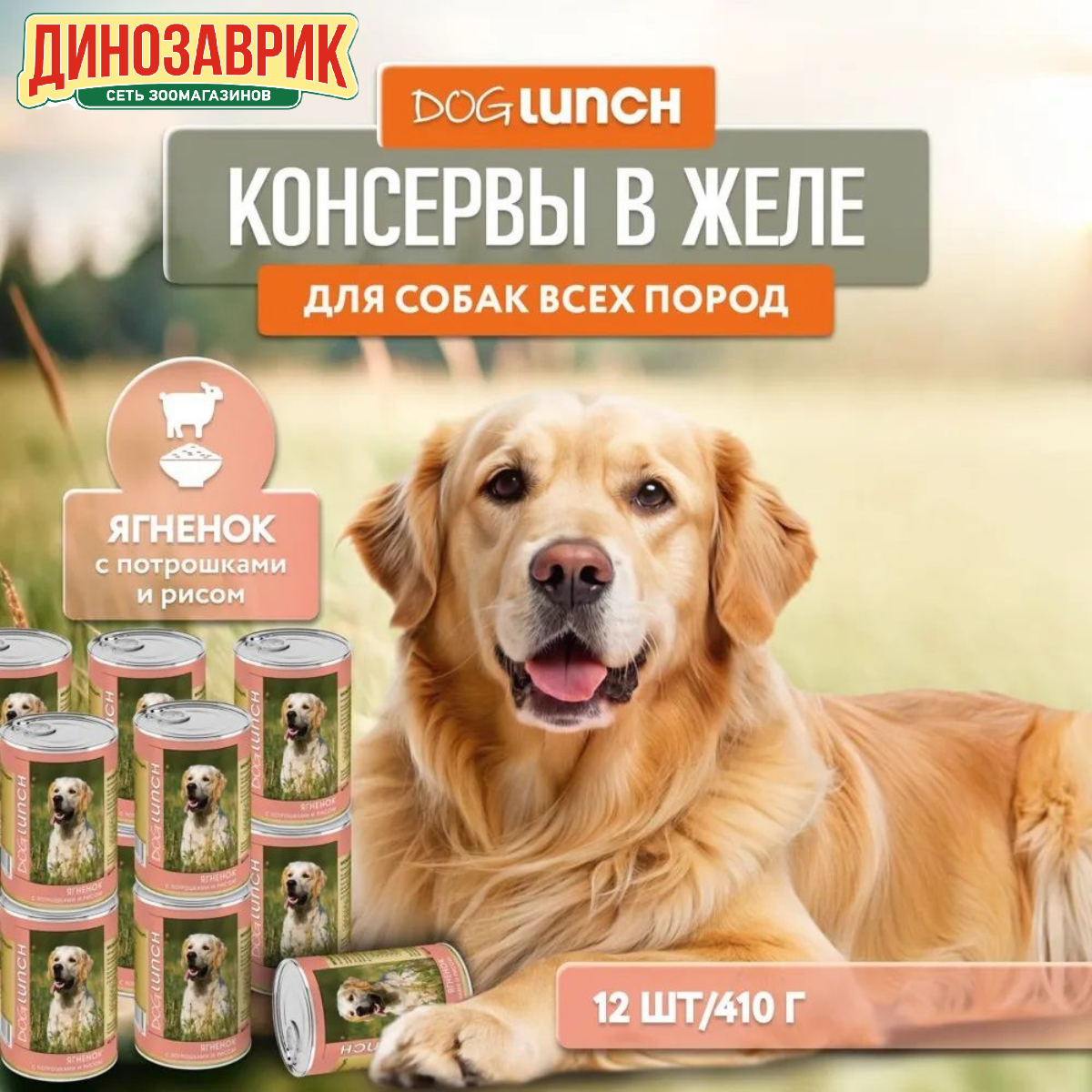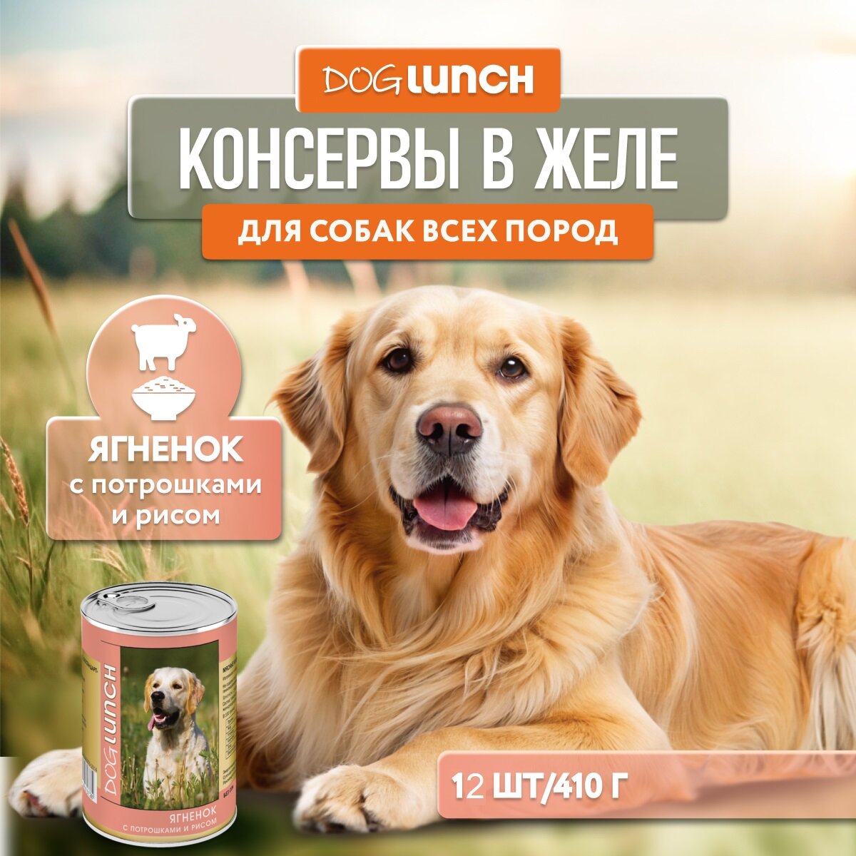 DogLunch консервы для собак Ягненок с потрошками и рисом в желе 12шт х 410гр