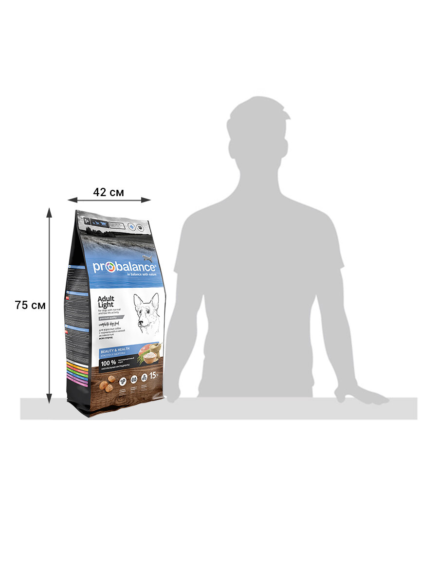 Корм для собак ProBalance Adult Light сухой для взрослых собак всех пород, 15 кг