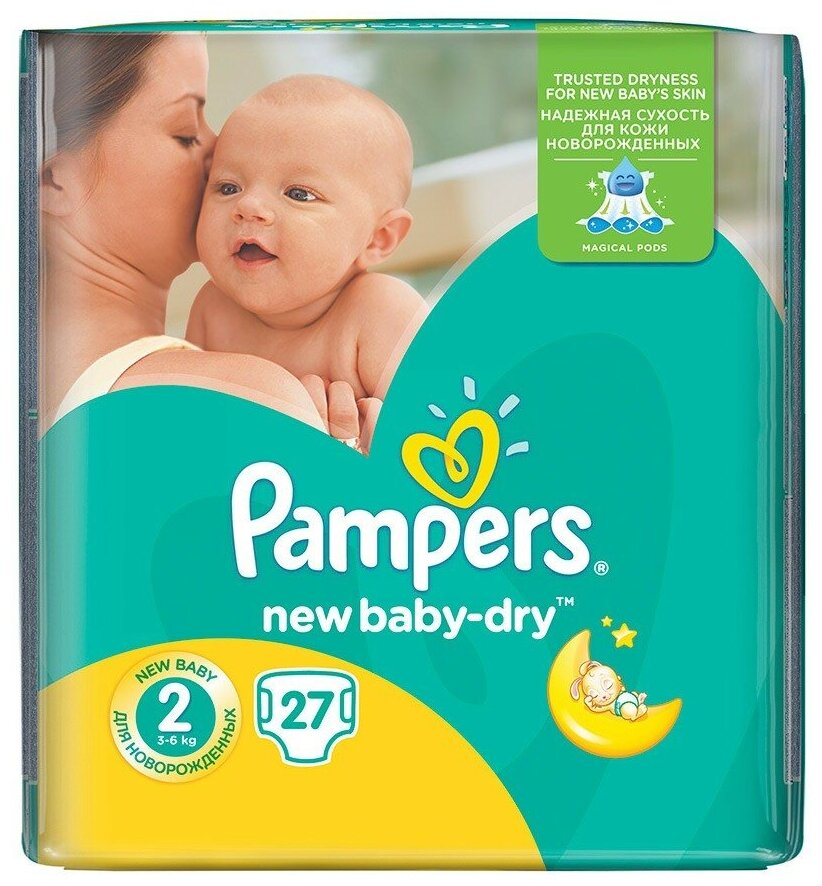 Pampers подгузники New Baby Dry 2, 4-8 кг, 27 шт., белый