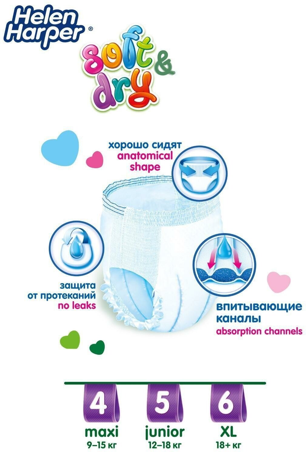 Подгузники трусики 6/XXL, 44 шт / Helen Harper Soft&Dry/ размер 6 ( 18+ кг) / детские/ с мягким пояском