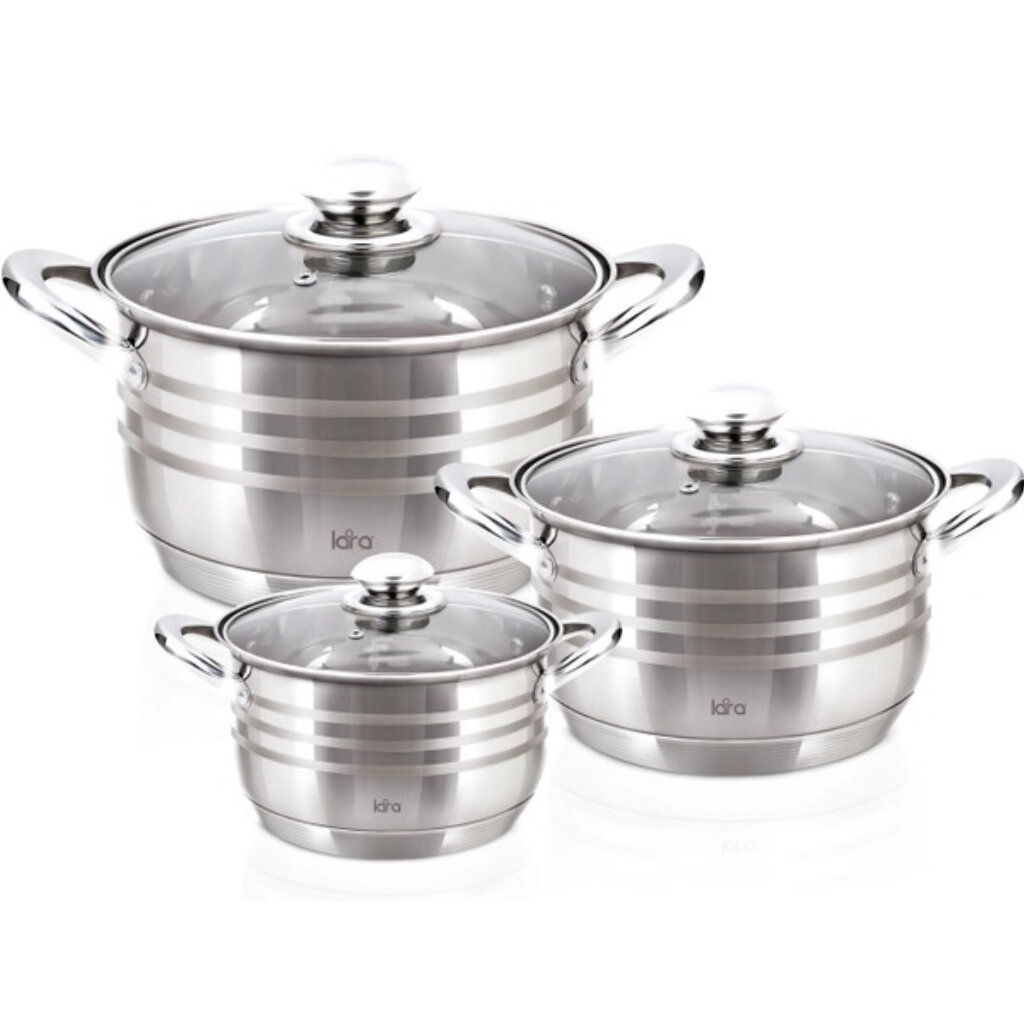 Набор кастрюль из нержавеющей стали LARA LR02-112 AURORA/ 2 л + 3.8 л + 6.3 л/ для всех видов плит/ 3 предмета