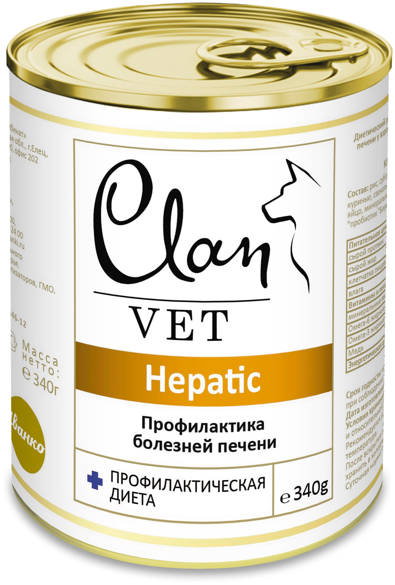Корм Clan Vet Hepatic (консерв.) для собак, профилактика болезней печени, 340 г x 12 шт