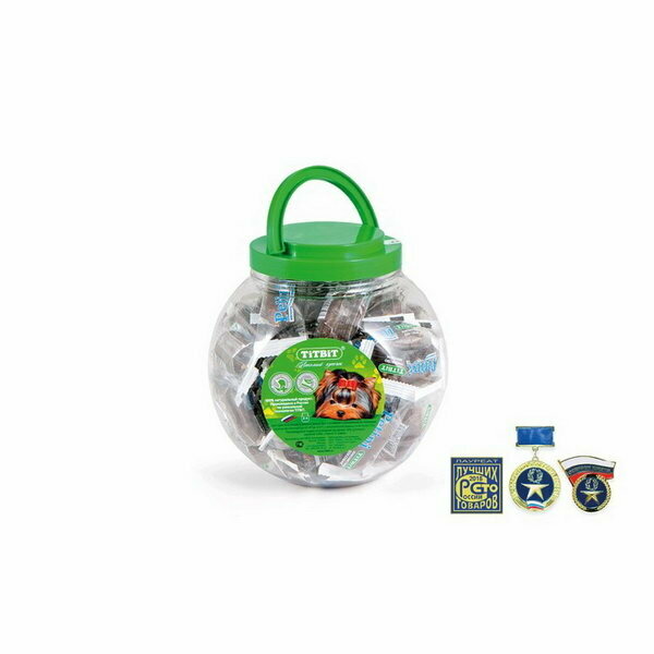 TiTBiT Колбаски Petini с индейкой (1 по 10гр) для собак банка пластиковая 2л