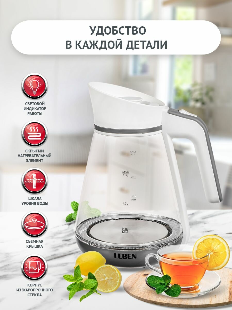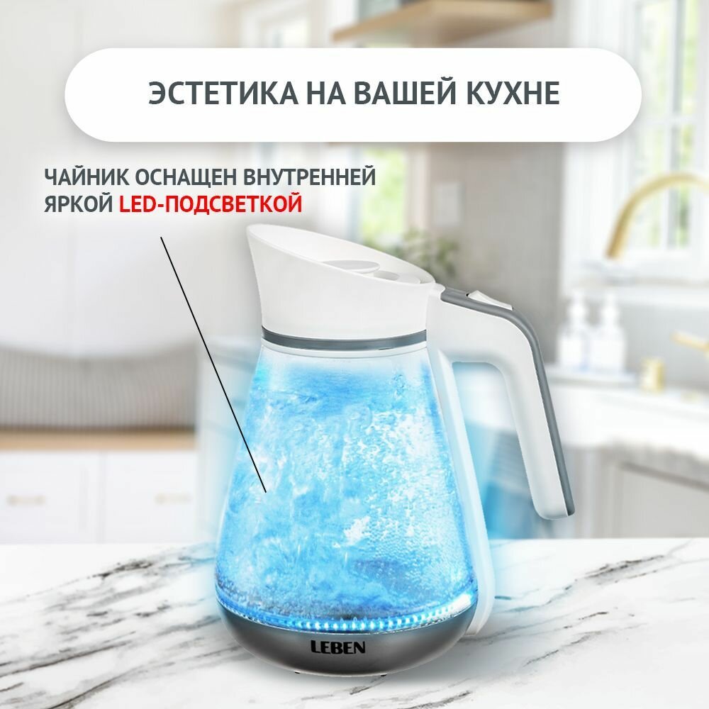 Чайник электрический LEBEN 291-060 1,5л стекло белый