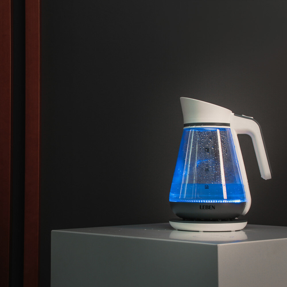 СохранитьЧайник электрический 1,5л, 1850Вт, скрытый нагр.элемент, автооткл.,стекло-кувшин,LED подсветка LEBEN интересное: