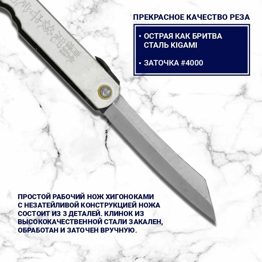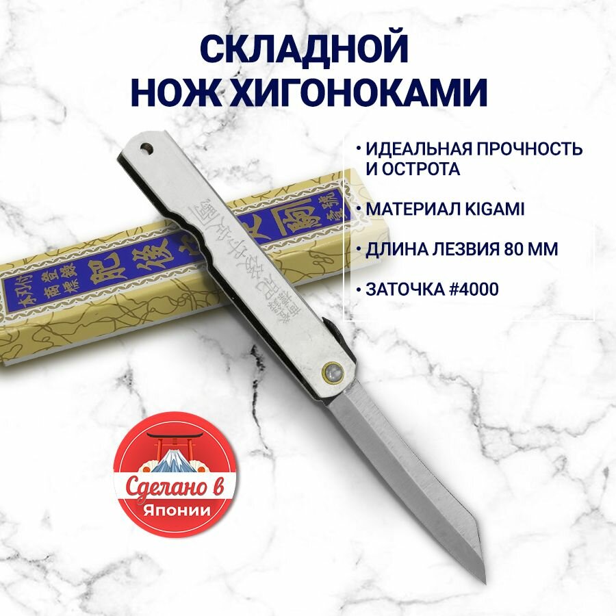 Нож складной HKC-80 silver, Higonokami, 80 мм, (сталь "Aogami" голубая бумага, однослойная)
