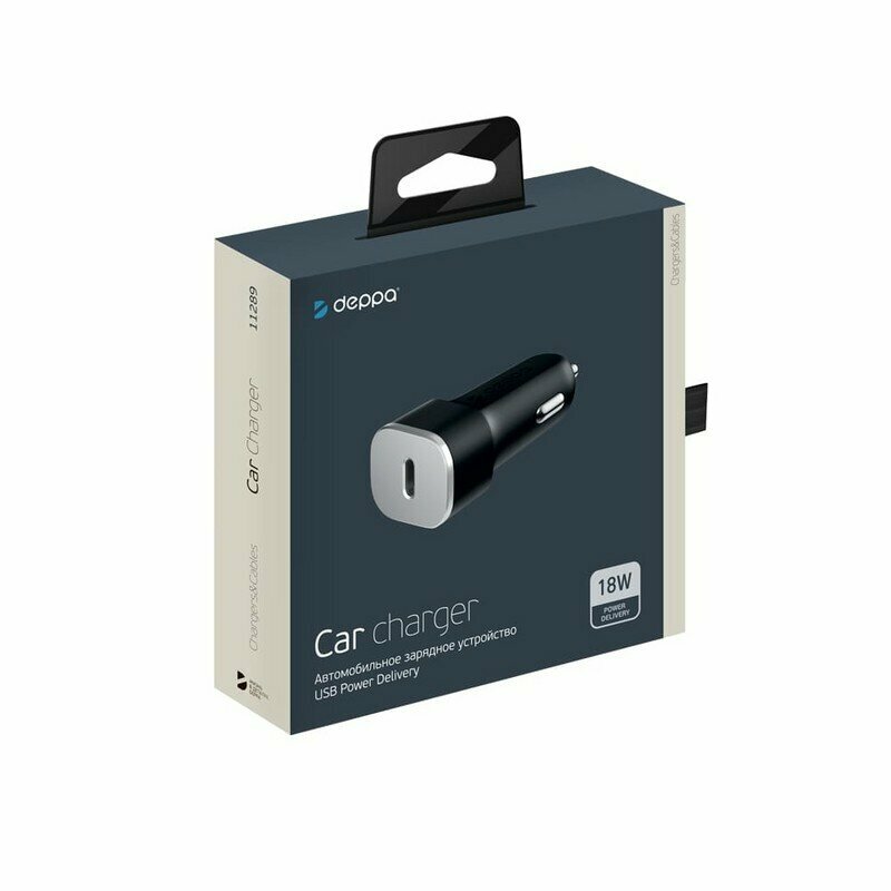 Автомобильное зарядное устройство Deppa USB Type-C, Power Delivery, 18Вт, черный 11289 .